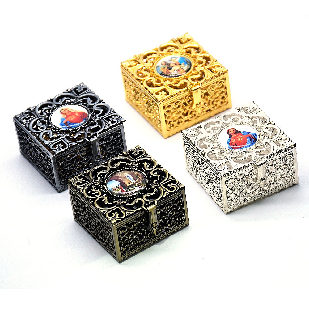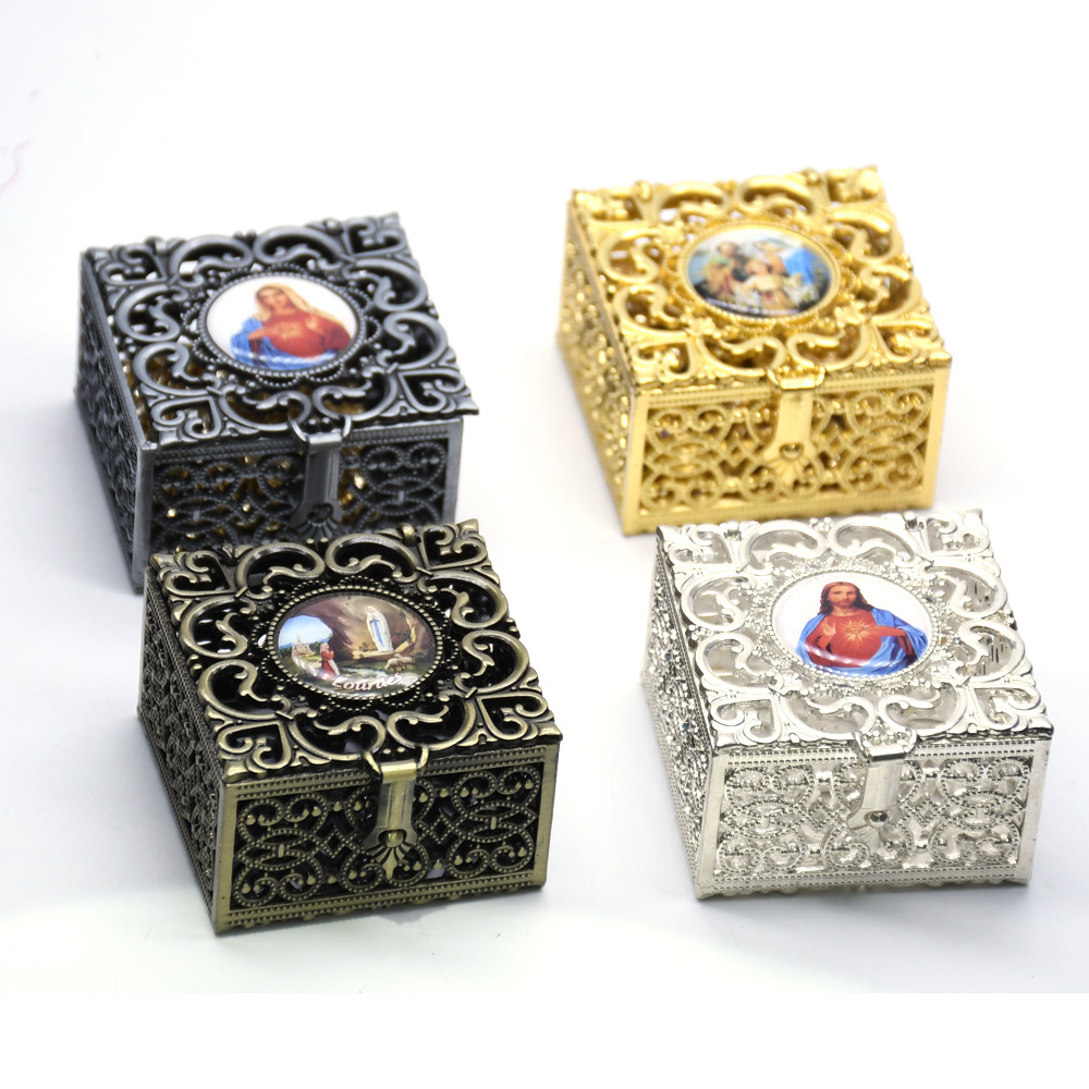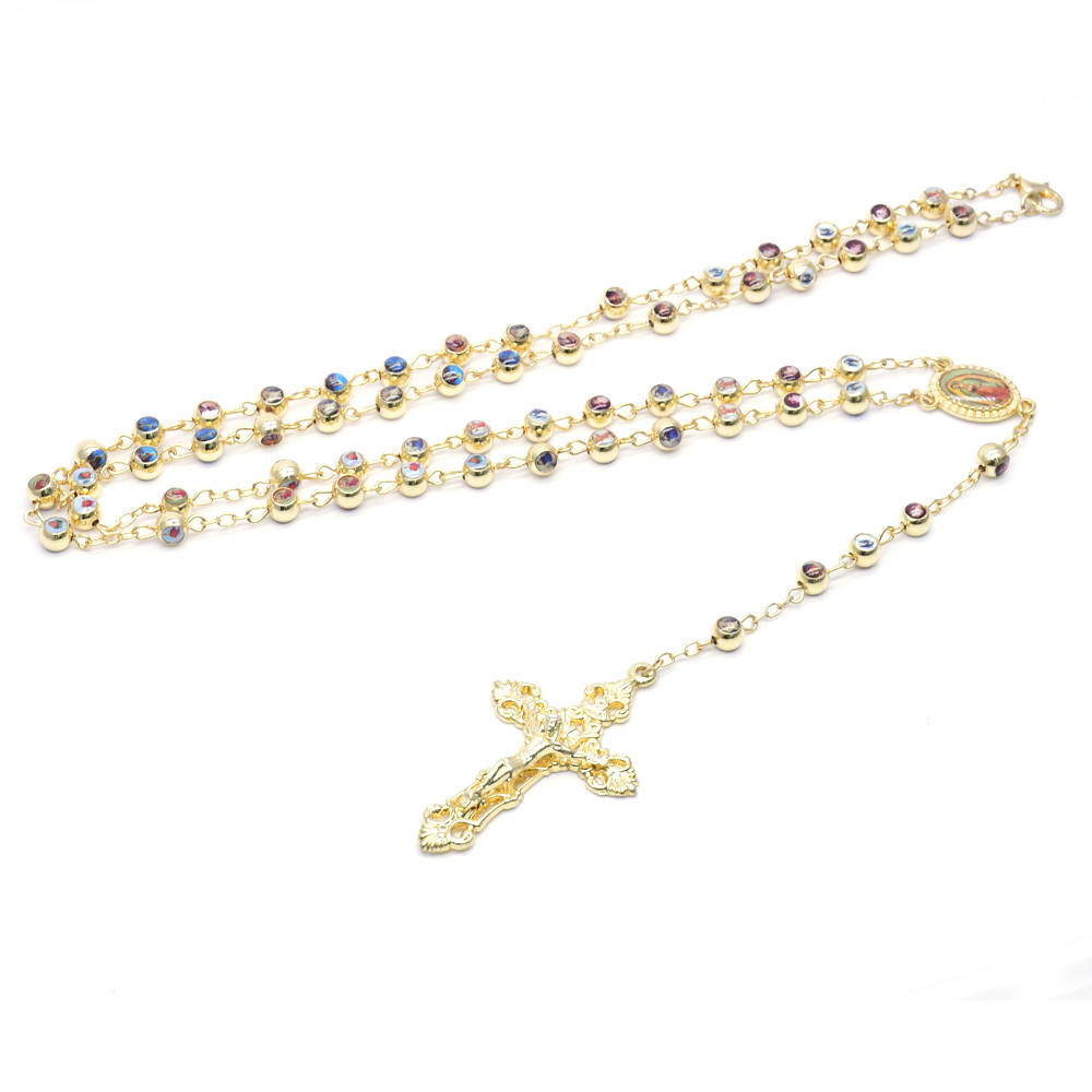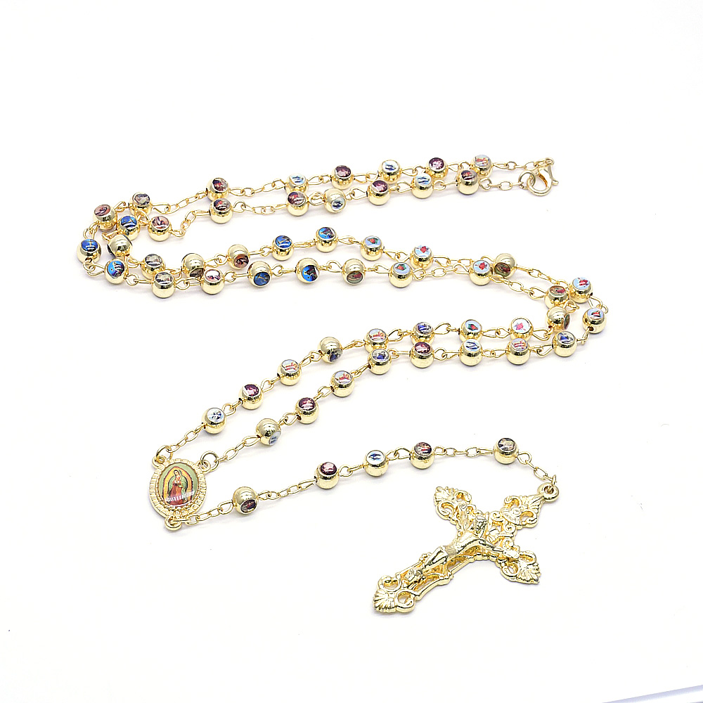 訂做500條起 真金電鍍念珠金屬盒裝高檔禮品十字架項鏈6mm圣像貼紙念珠祈禱珠