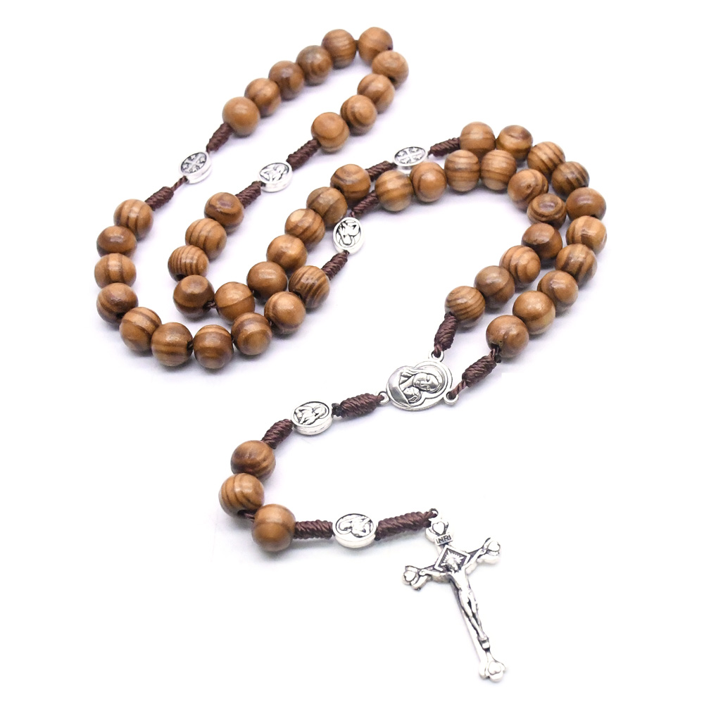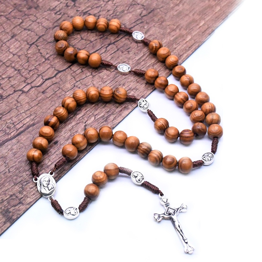 松木柱形繩編念珠十字架項(xiàng)鏈