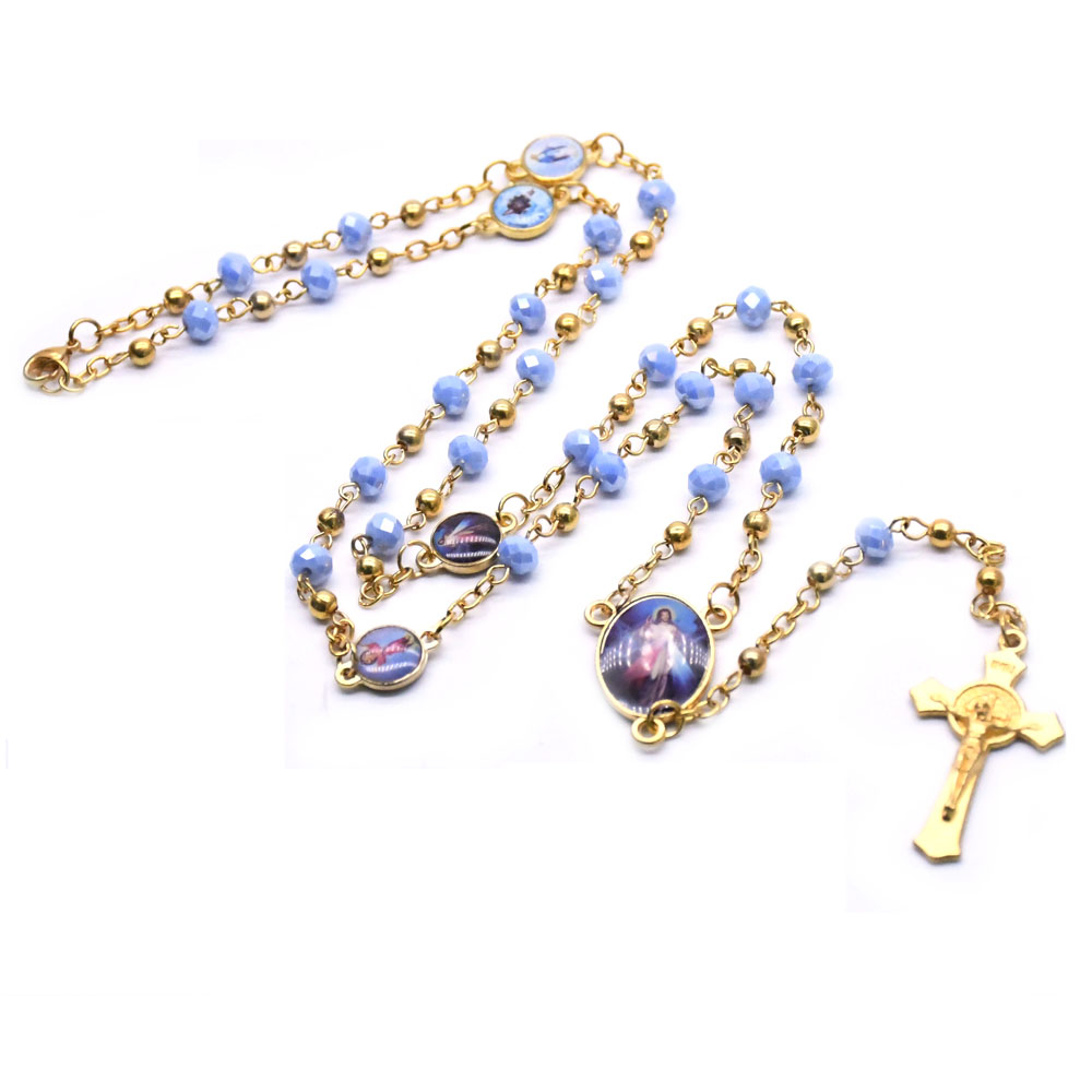 (透明)四圣像貼圖金屬珠水晶念珠十字架項(xiàng)鏈(圖片隨機(jī))