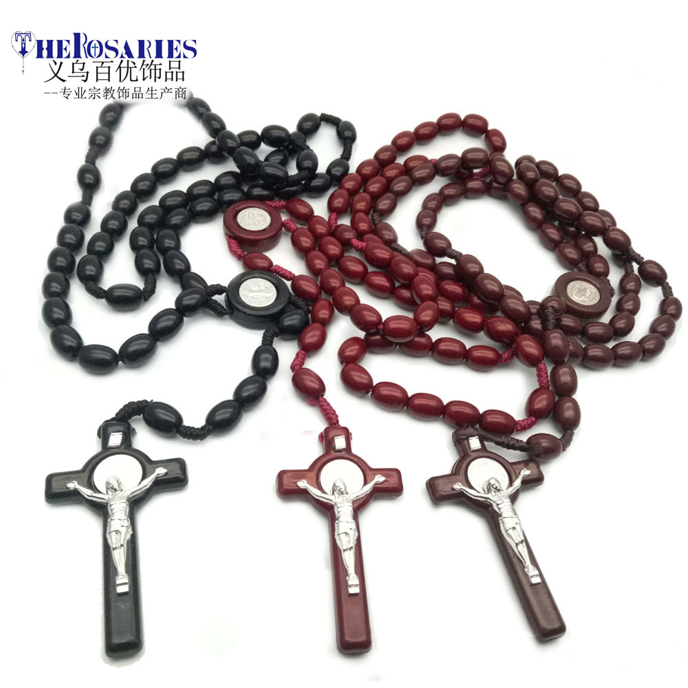 水晶十字架念珠Rosary 項(xiàng)鏈外貿(mào)飾品批發(fā)多色選 6*8mm