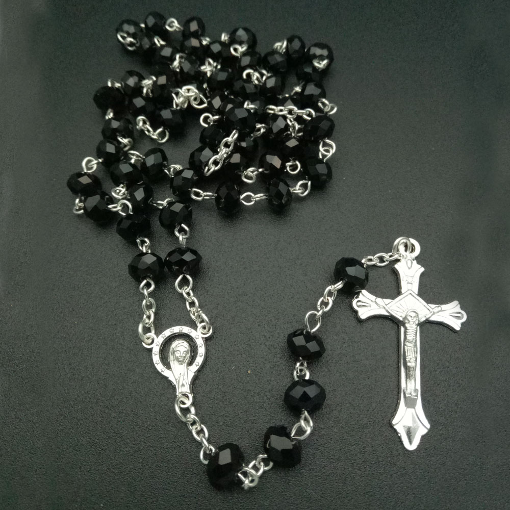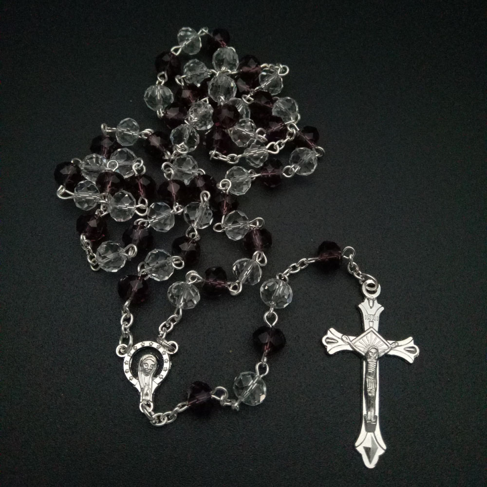 8*10mm大水晶念珠十字架宗教飾品項鏈宗教飾品批發(fā)