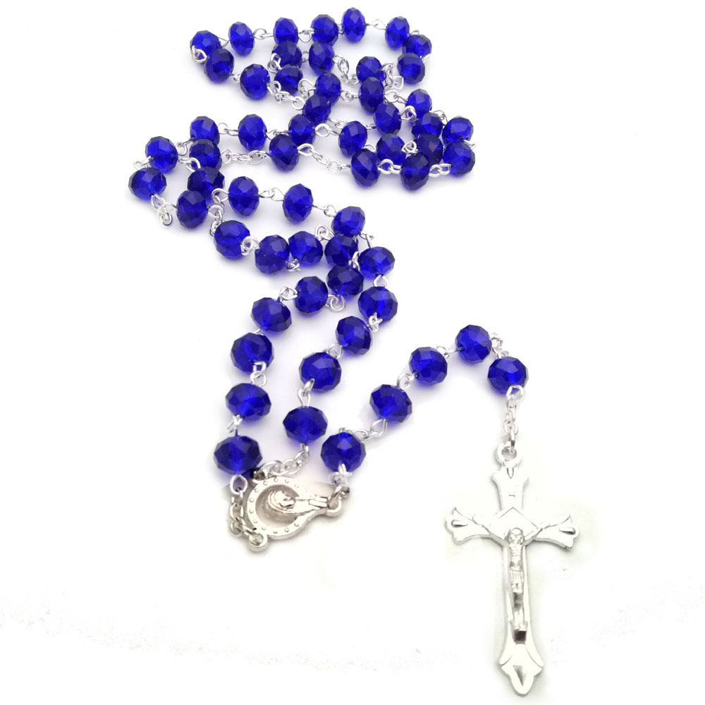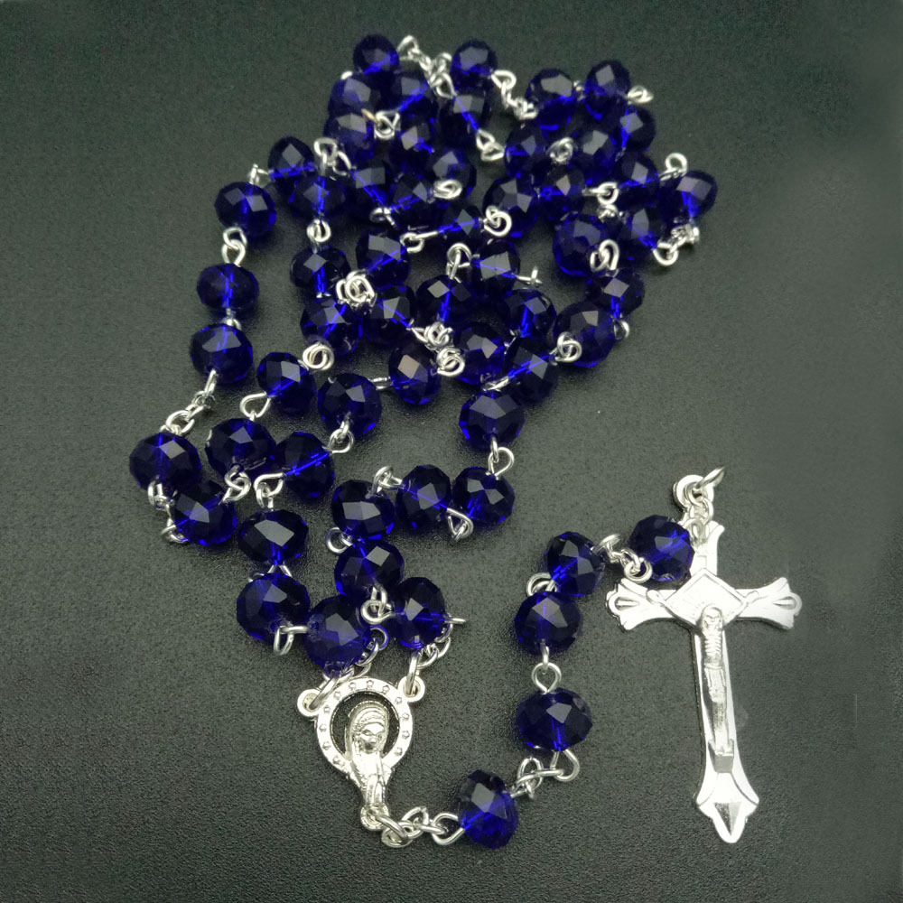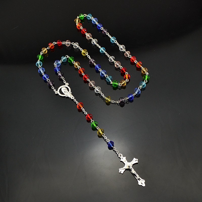 水晶十字架念珠Rosary 項鏈外貿(mào)飾品批發(fā)多色選 6*8mm