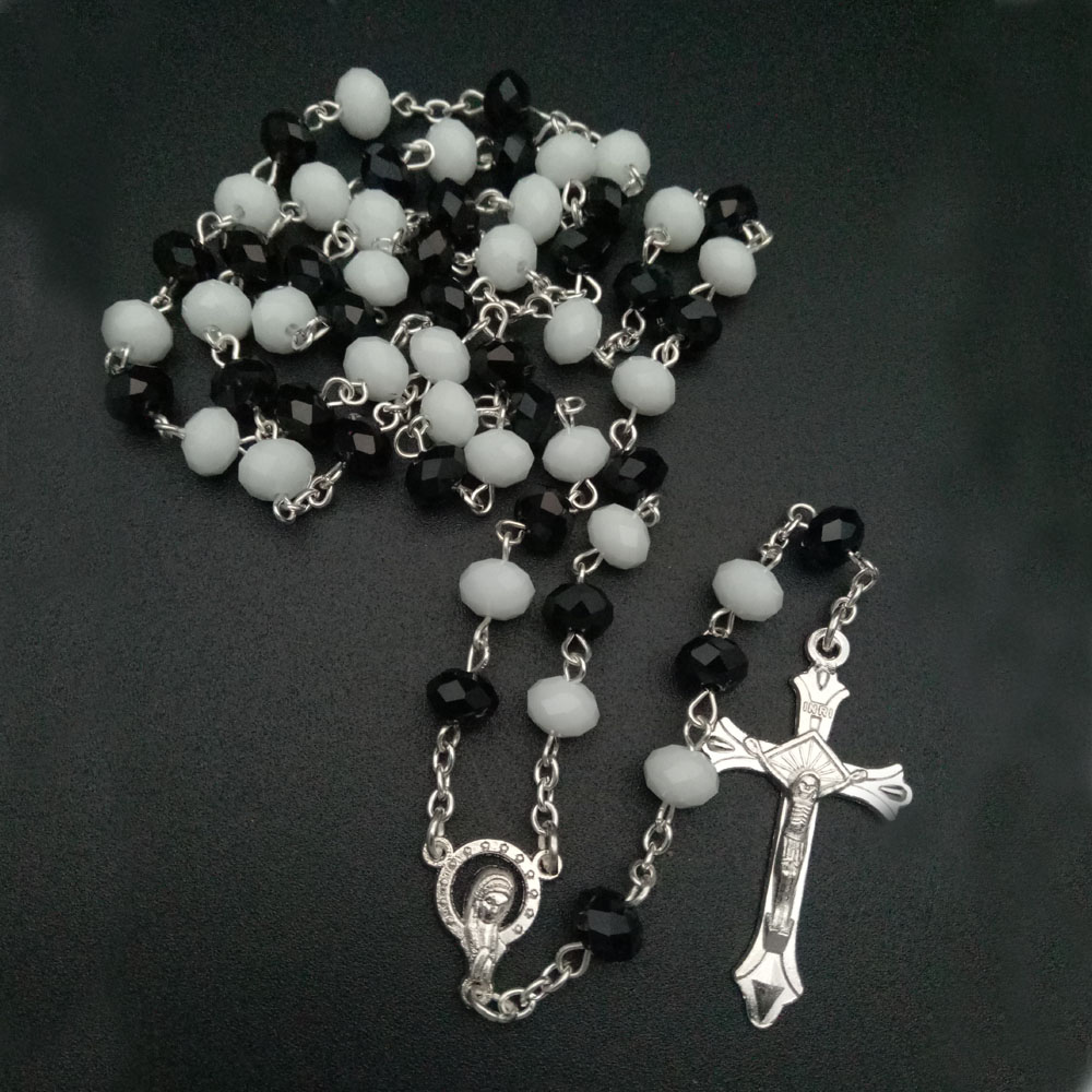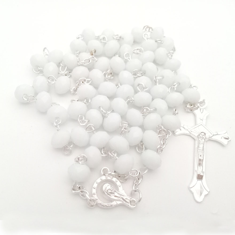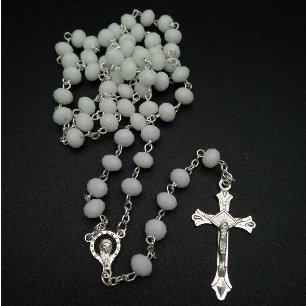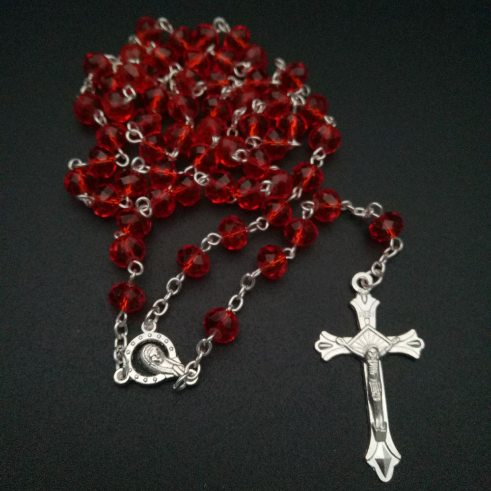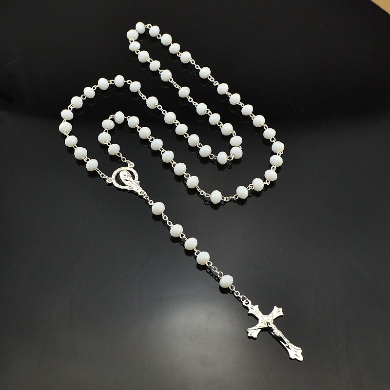 水晶十字架念珠Rosary 項(xiàng)鏈外貿(mào)飾品批發(fā)多色選 6*8mm
