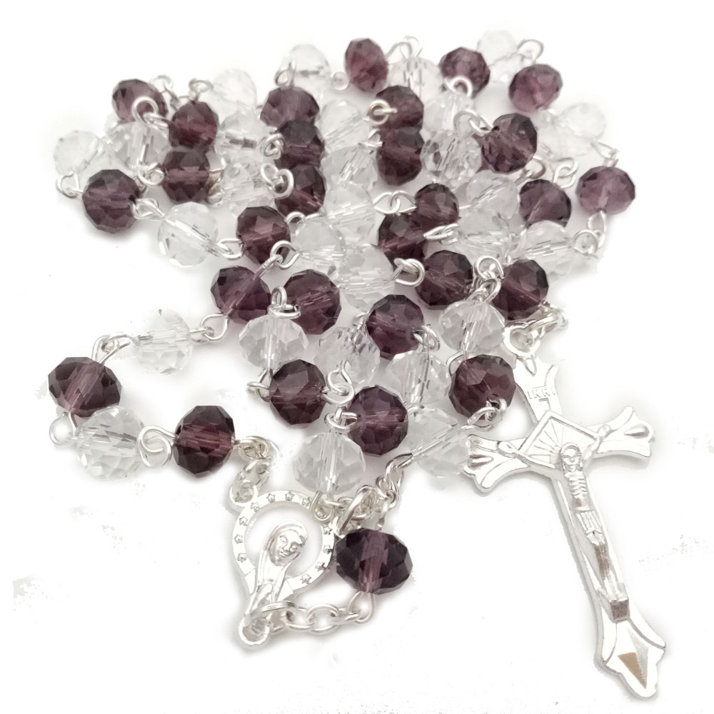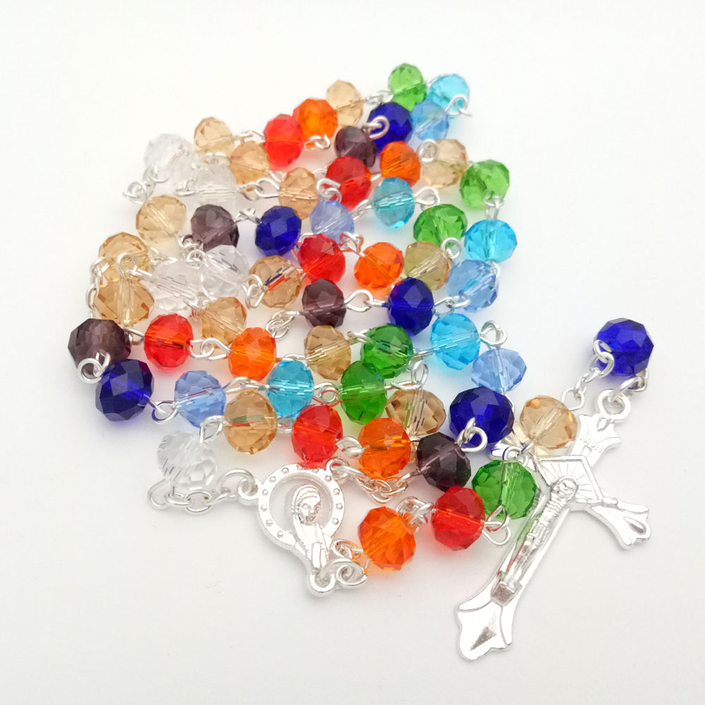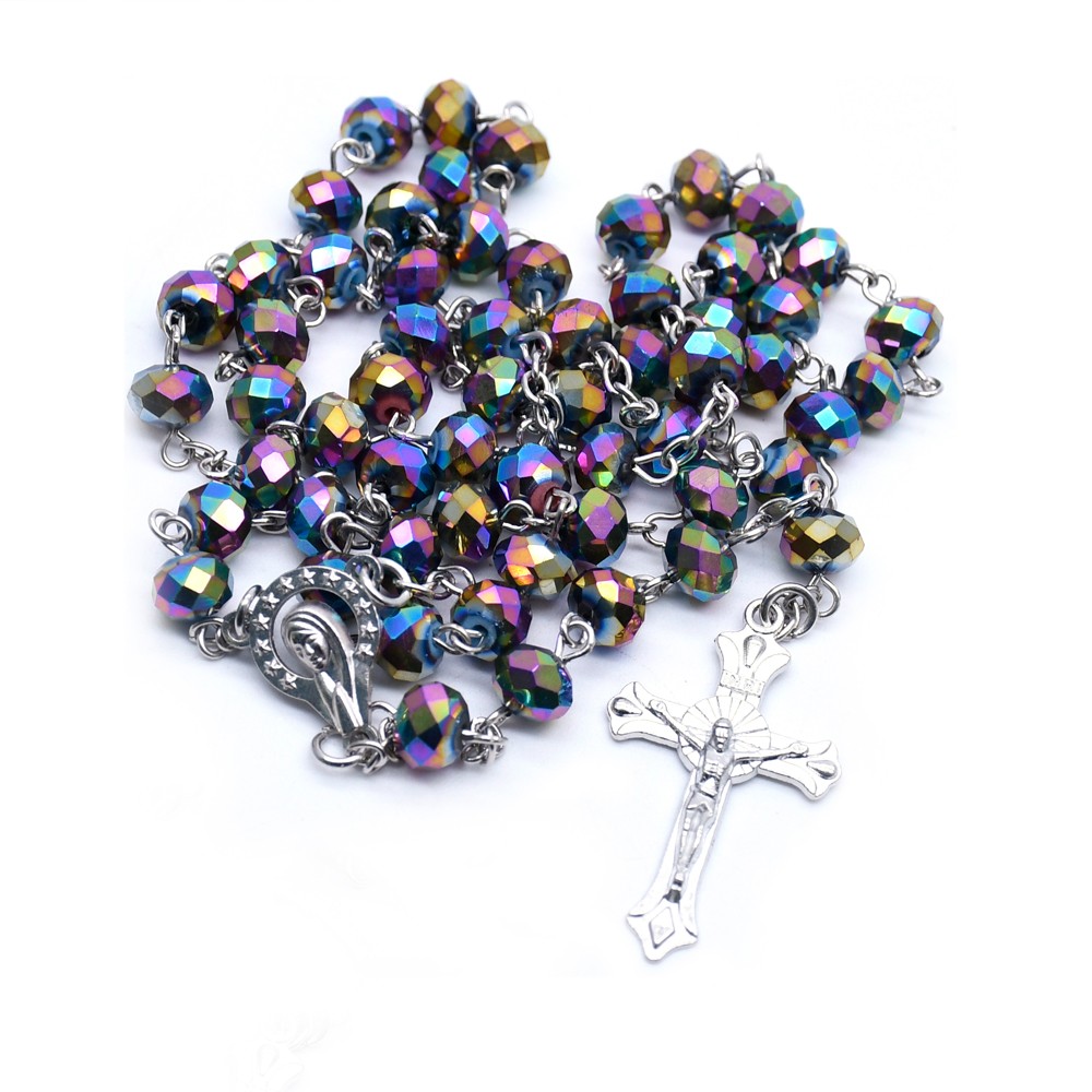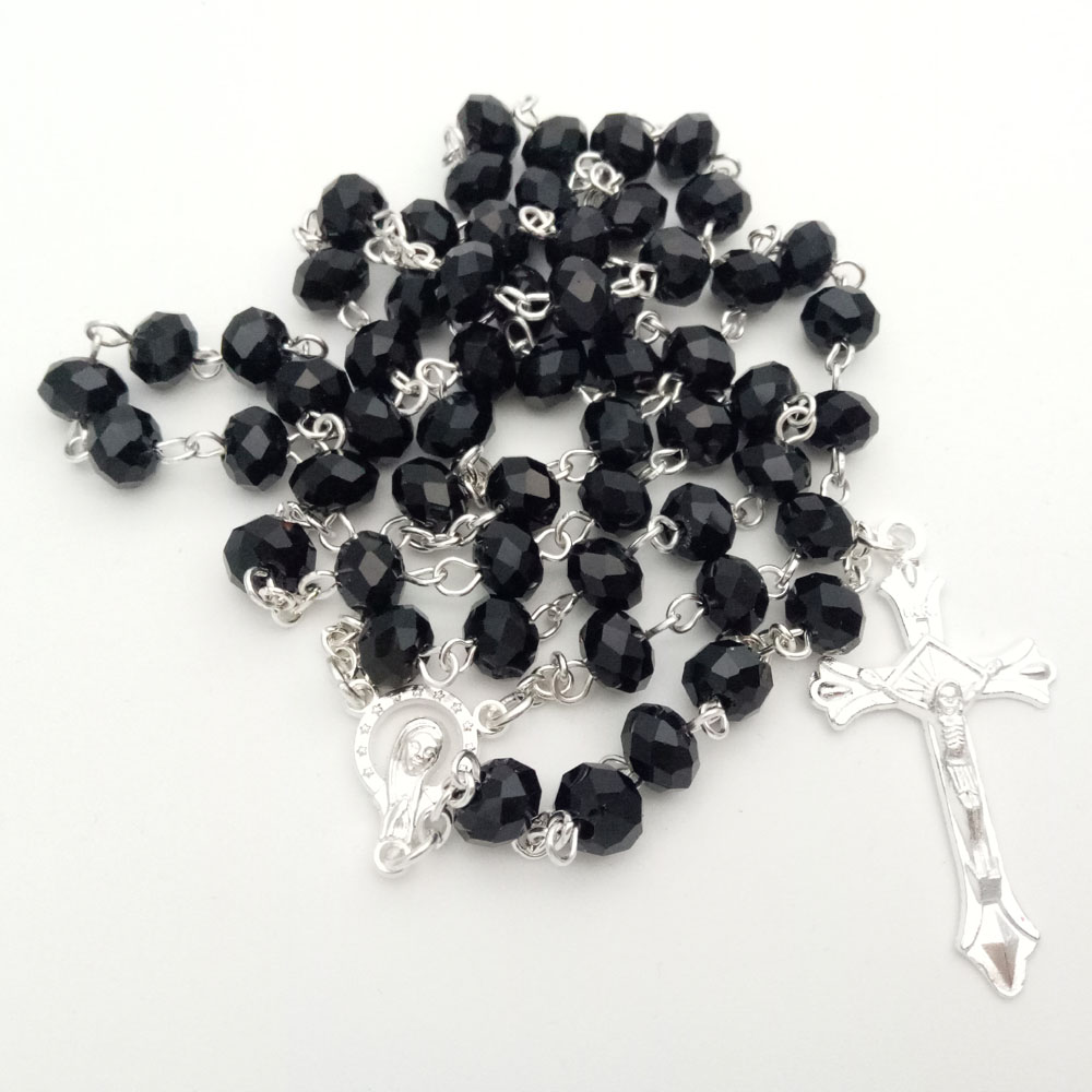 水晶十字架念珠Rosary 項(xiàng)鏈外貿(mào)飾品批發(fā)多色選 6*8mm
