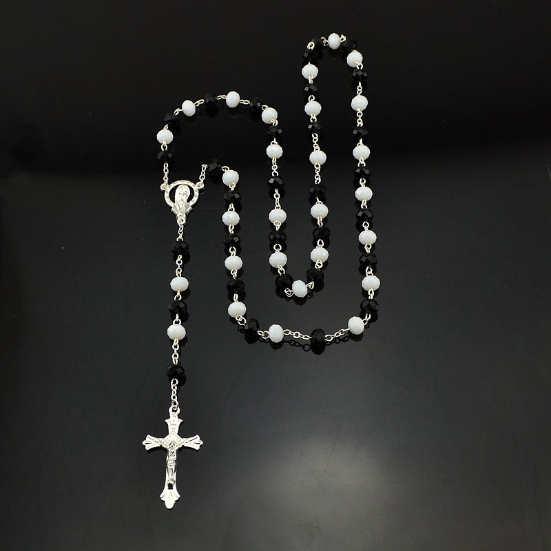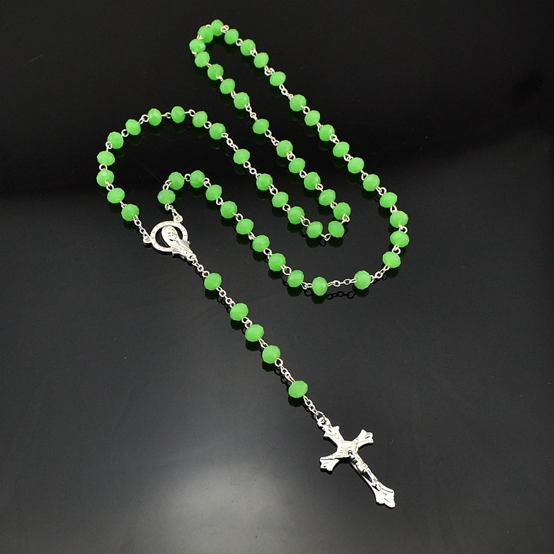 水晶十字架念珠Rosary 項(xiàng)鏈外貿(mào)飾品批發(fā)多色選 6*8mm