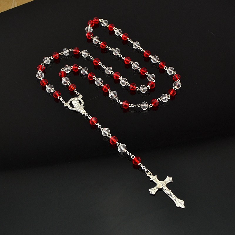 外貿(mào)出口貨源水晶十字架念珠Rosary項鏈飾品批發(fā)多色選 6*8