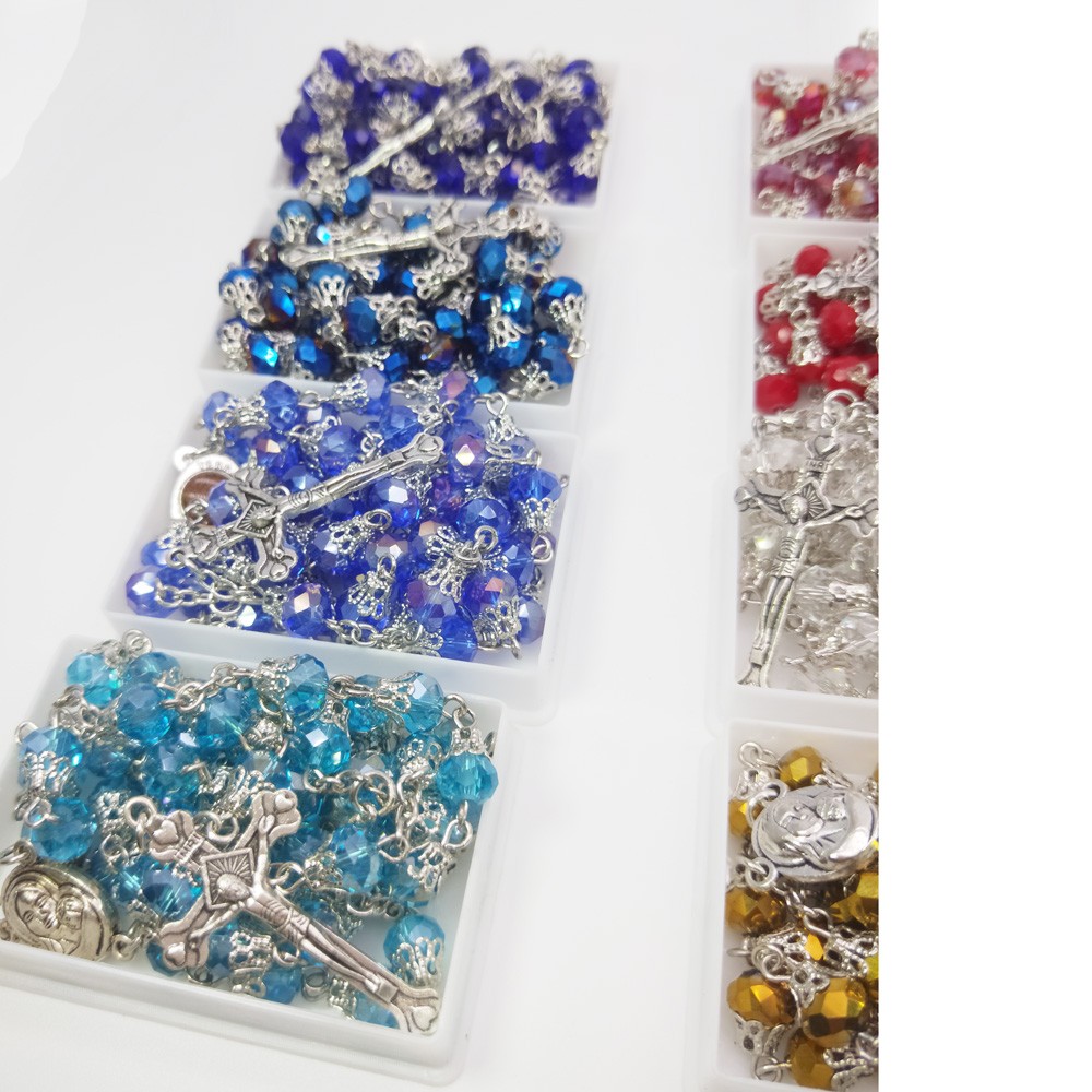 外貿(mào)出口貨源水晶十字架念珠Rosary項(xiàng)鏈飾品批發(fā)多色選 6*8