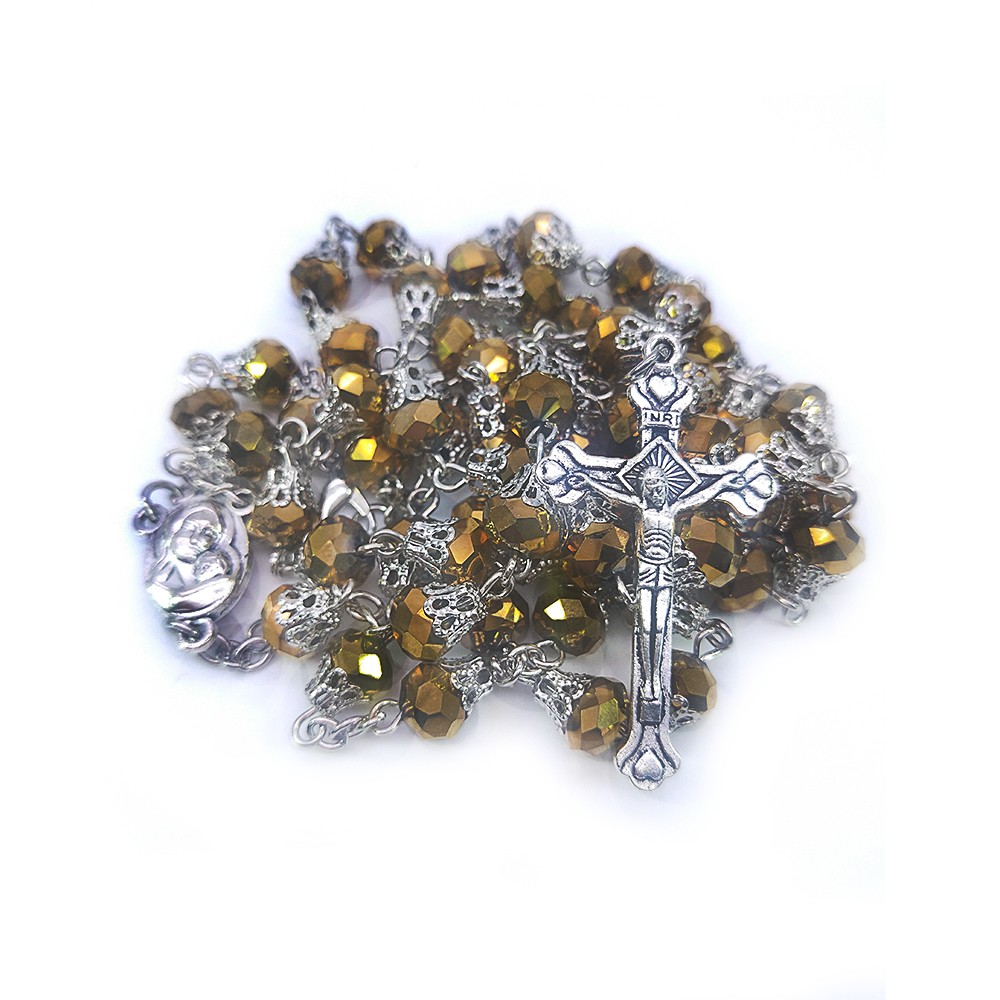 500條起訂 6mm水晶帶花托念珠項鏈十字架項鏈