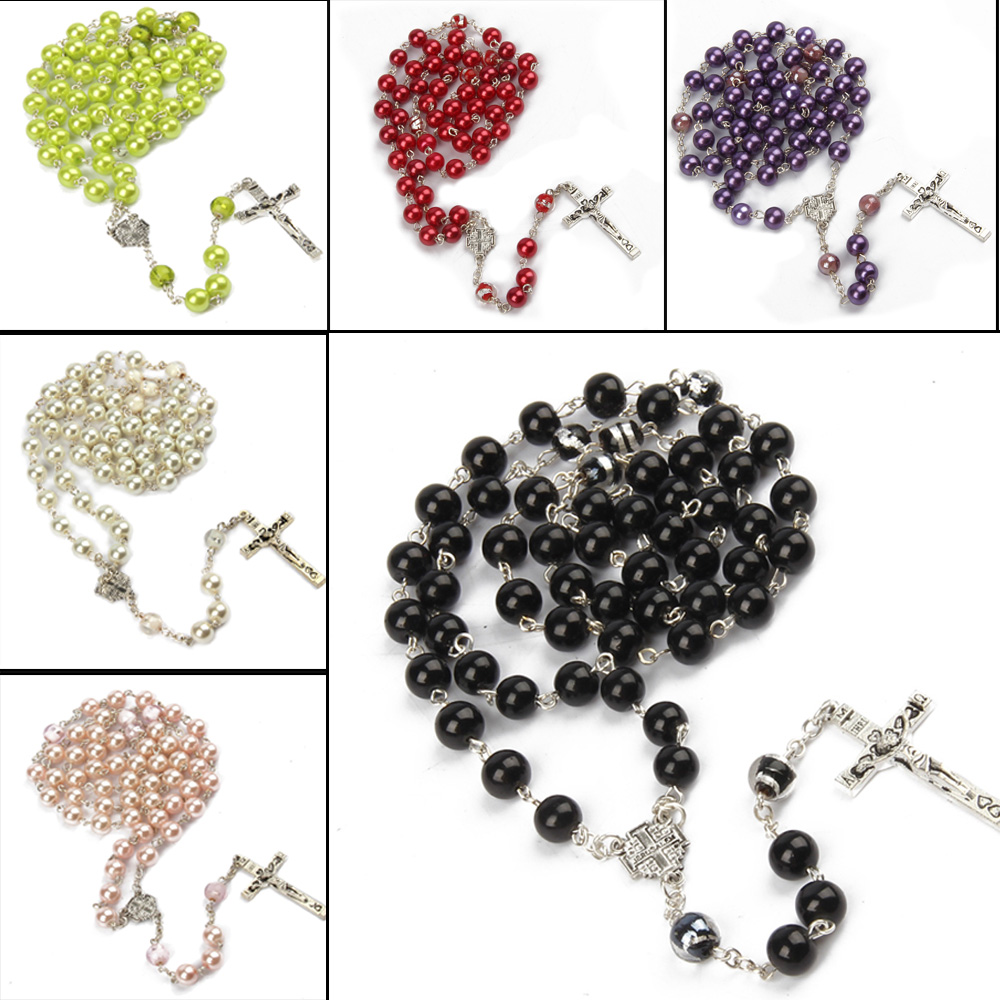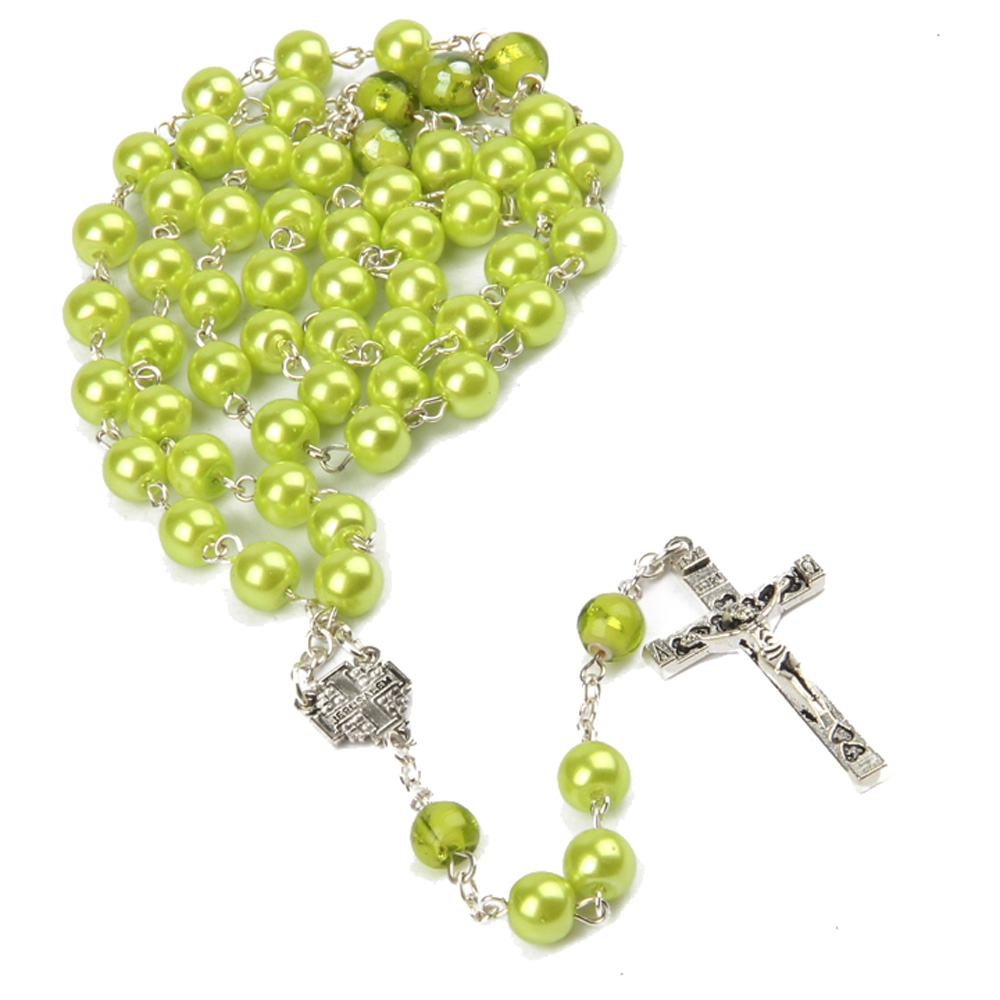 (綠色)Rosary念珠飾品項(xiàng)鏈仿陶瓷珠十字架項(xiàng)鏈祈禱珠