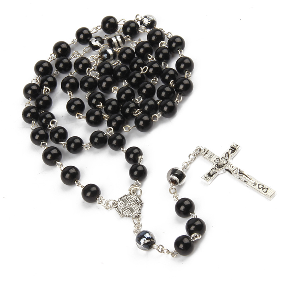 (咖色)Rosary念珠飾品項(xiàng)鏈仿陶瓷珠十字架項(xiàng)鏈