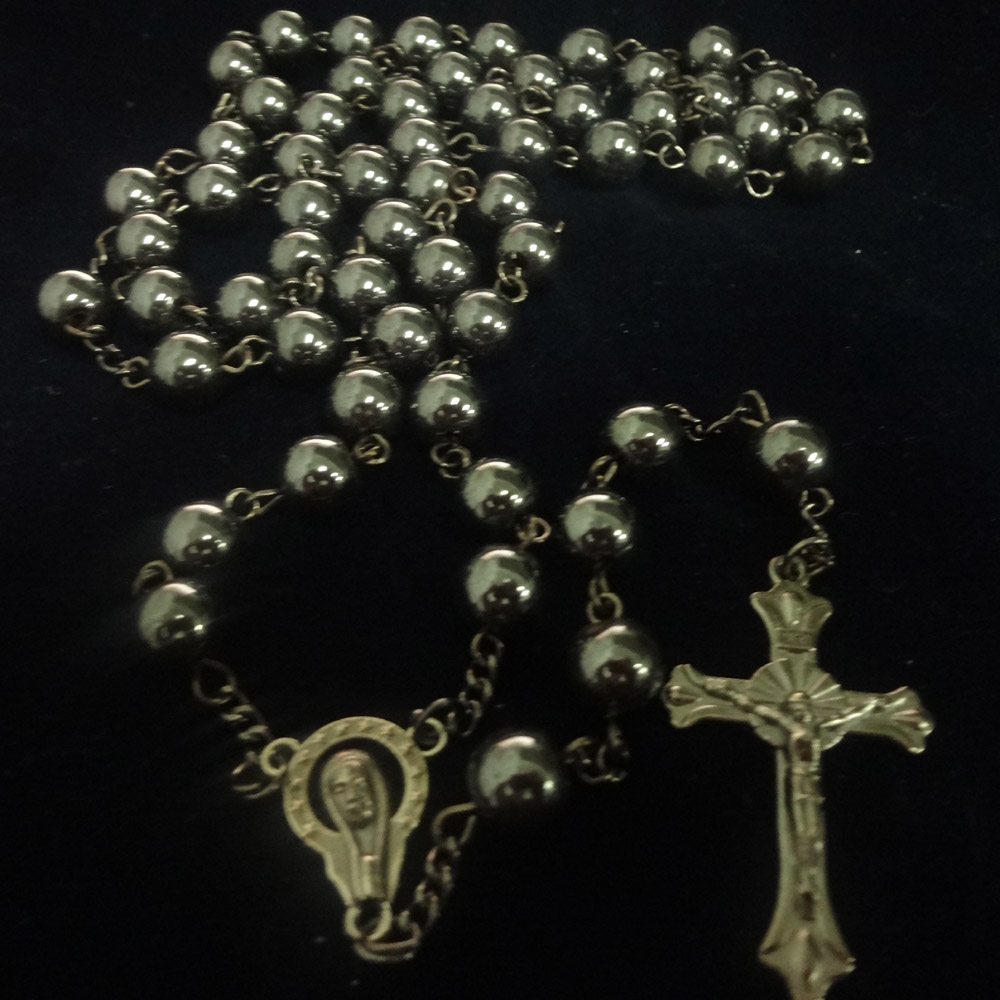 銀色十字架念珠項鏈 毛衣鏈祈禱珠