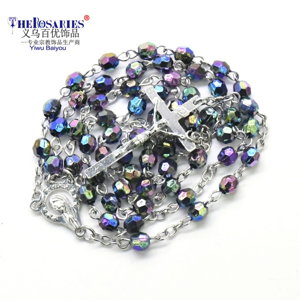 仿水晶塑料壓克力念珠十字架項(xiàng)鏈瑪麗亞祈禱用品批發(fā)