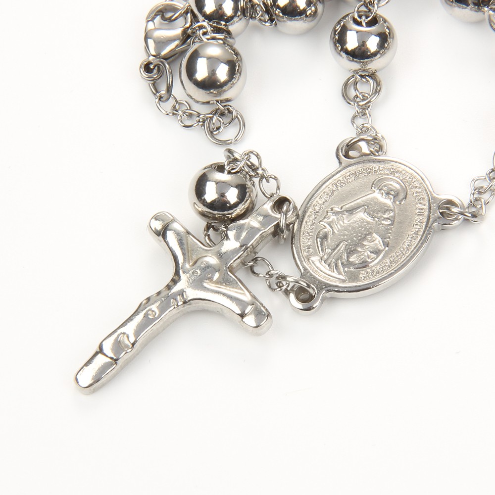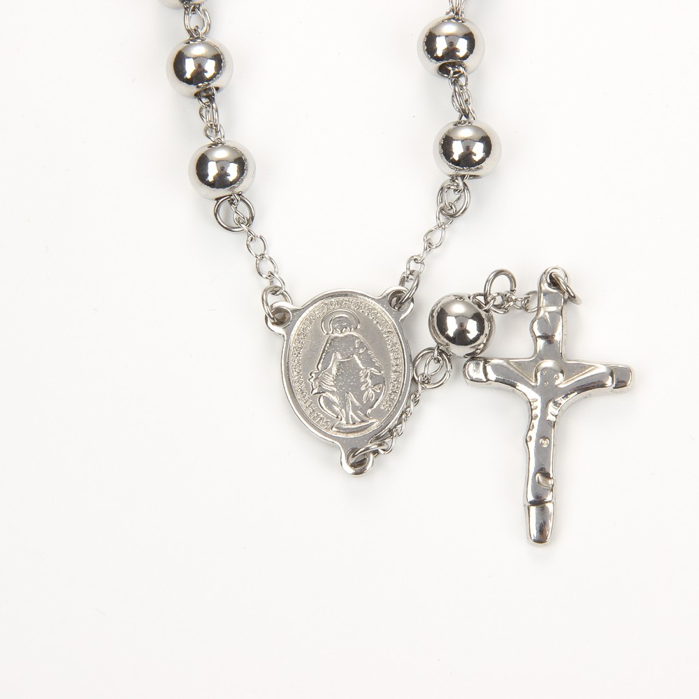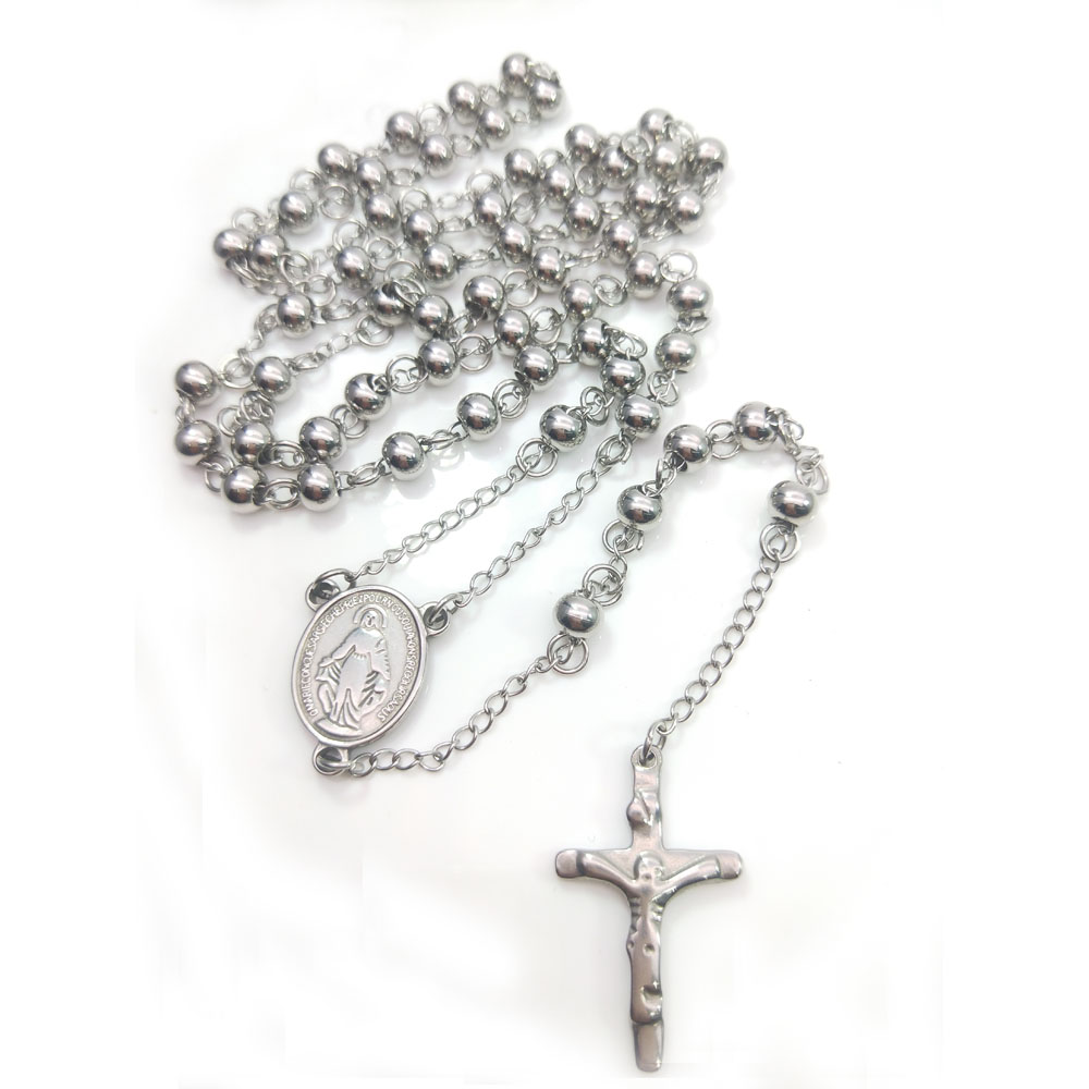 跨境電商6mm 不銹鋼念珠項鏈十字架金銀飾品