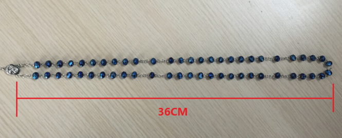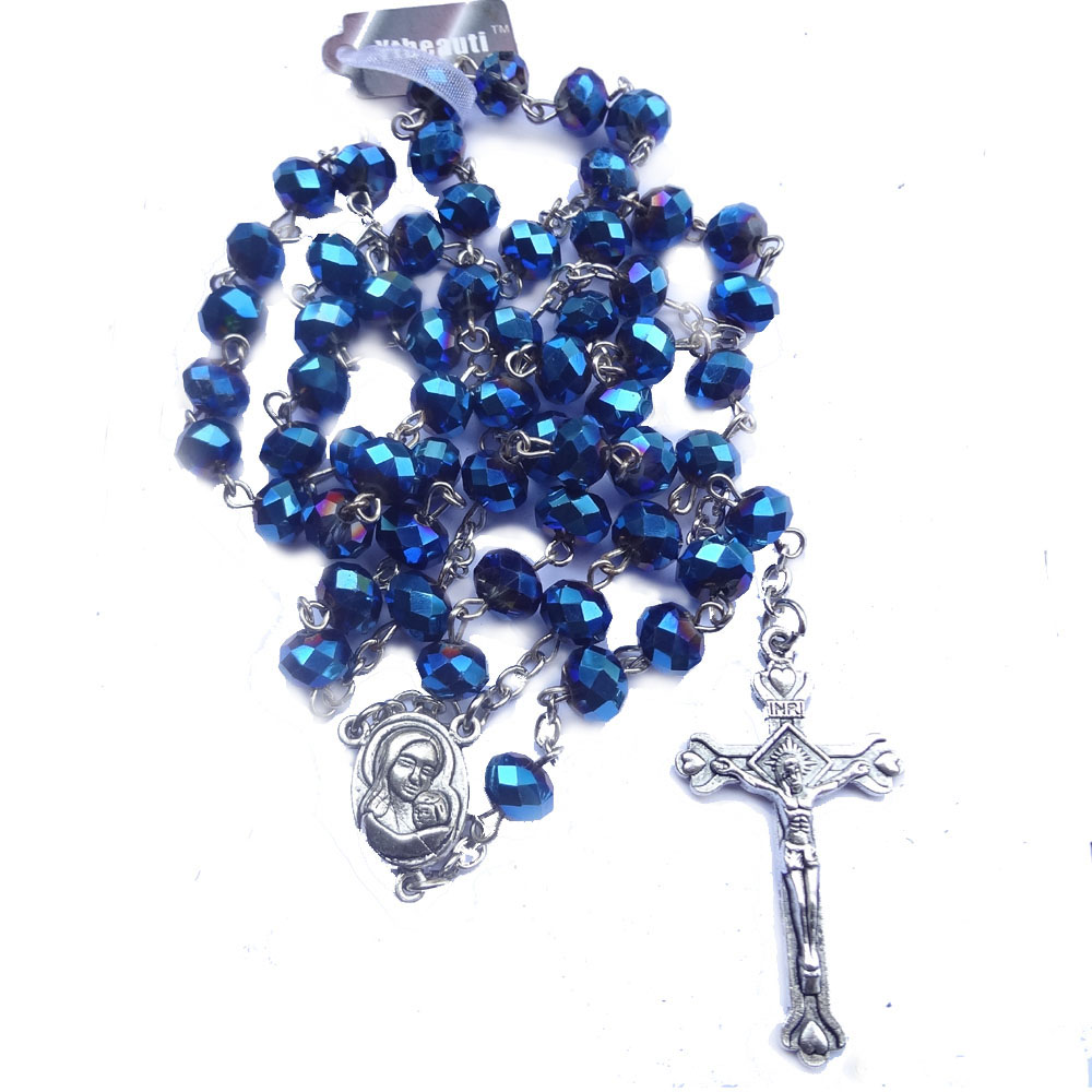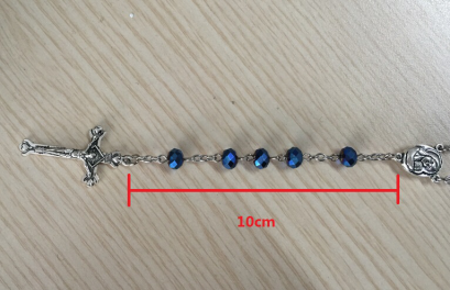 電商外貿(mào)產(chǎn)品8mm藍色水晶念珠十字架項鏈禮品批發(fā)