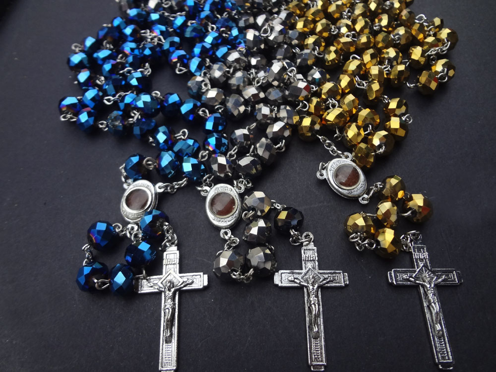 外貿(mào)出口貨源水晶十字架念珠Rosary項鏈飾品批發(fā)多色選 6*8