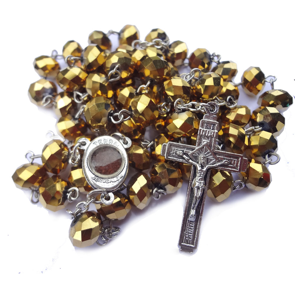 外貿(mào)工廠貨源水晶念珠JERUSALEM耶路撒冷帶盒十字架項(xiàng)鏈用品禮品