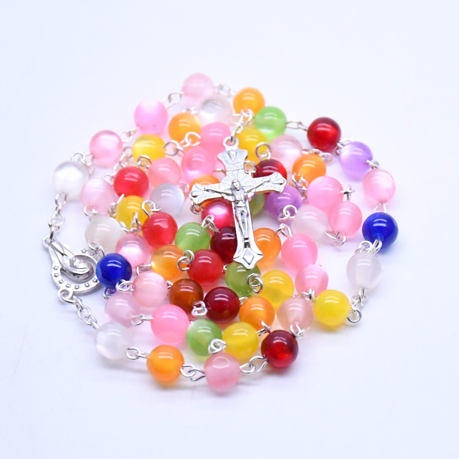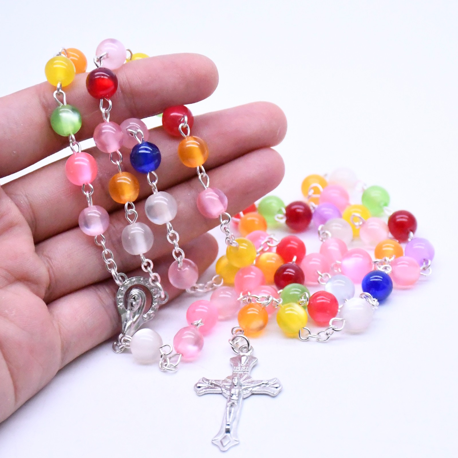 夜光十字架項(xiàng)鏈連線珠 塑料發(fā)光念珠項(xiàng)鏈(顏色隨機(jī),按12條倍數(shù)拍)
