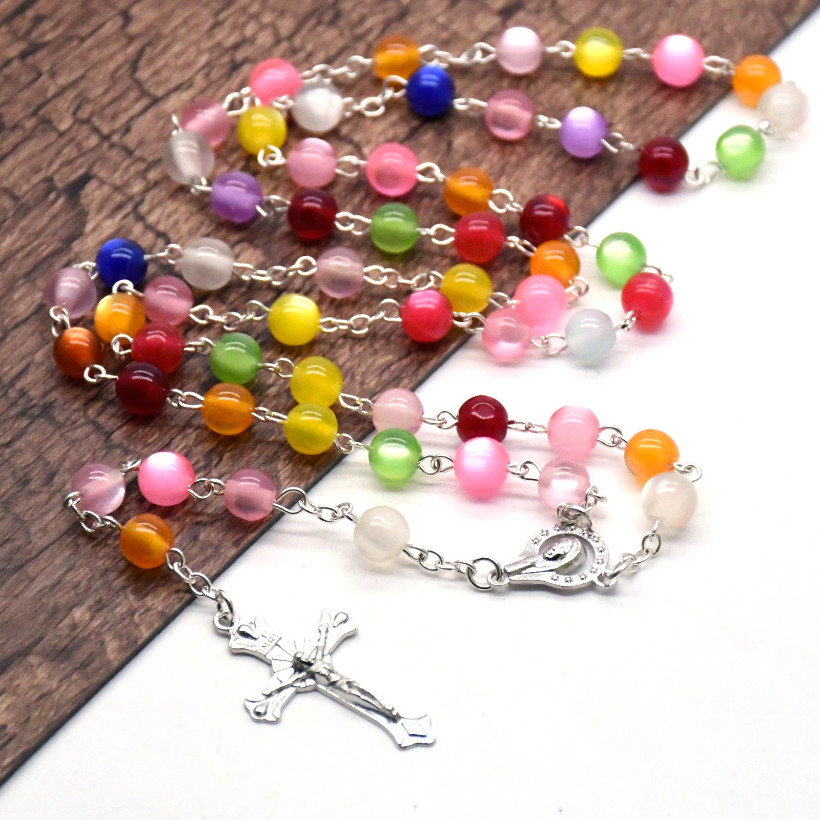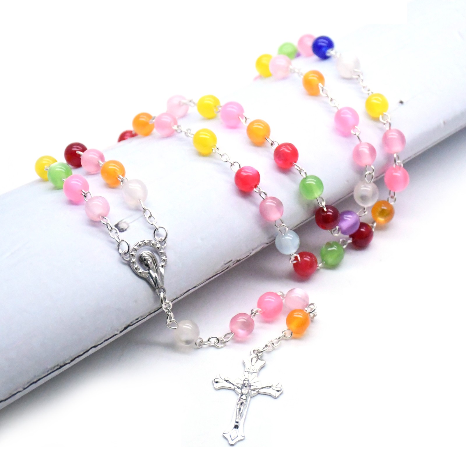 念珠飾品批發(fā) 十字架項(xiàng)鏈塑料玫瑰珠項(xiàng)鏈