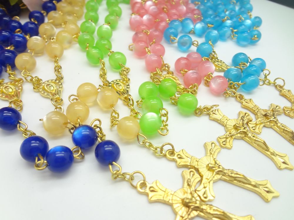 念珠飾品批發(fā) 十字架項(xiàng)鏈塑料玫瑰珠項(xiàng)鏈