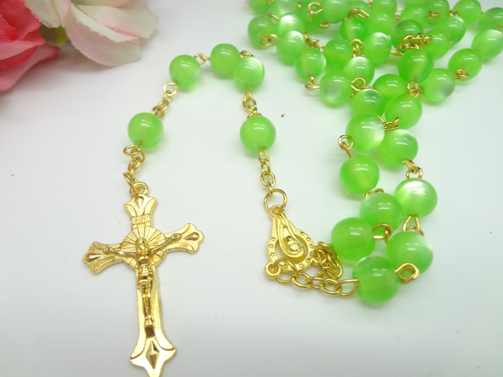 念珠飾品批發(fā) 十字架項(xiàng)鏈塑料玫瑰珠項(xiàng)鏈