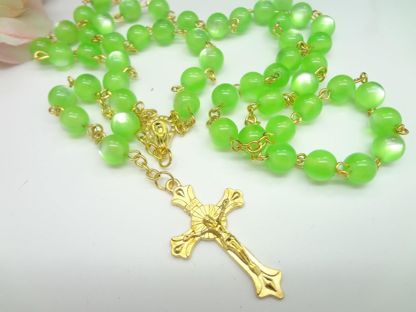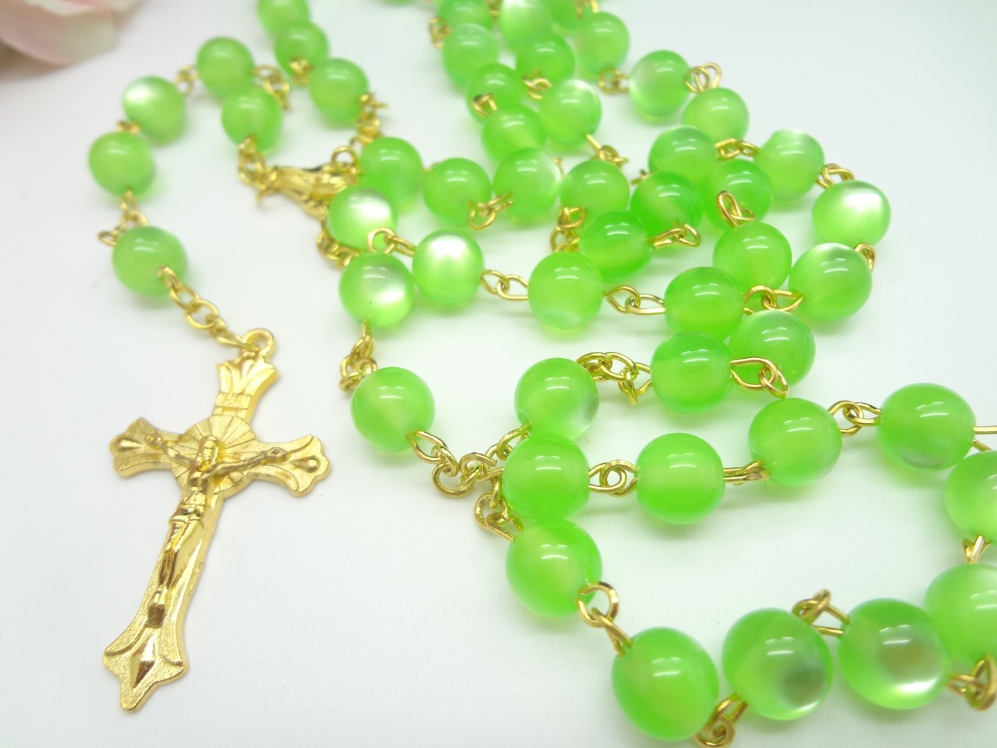 夜光十字架項(xiàng)鏈連線珠 塑料發(fā)光念珠項(xiàng)鏈(顏色隨機(jī),按12條倍數(shù)拍)