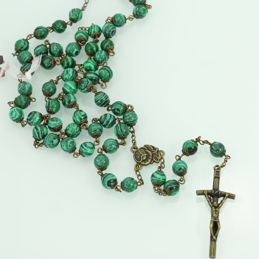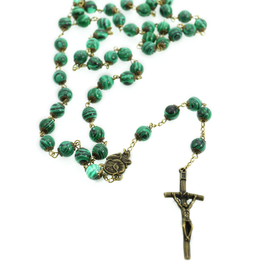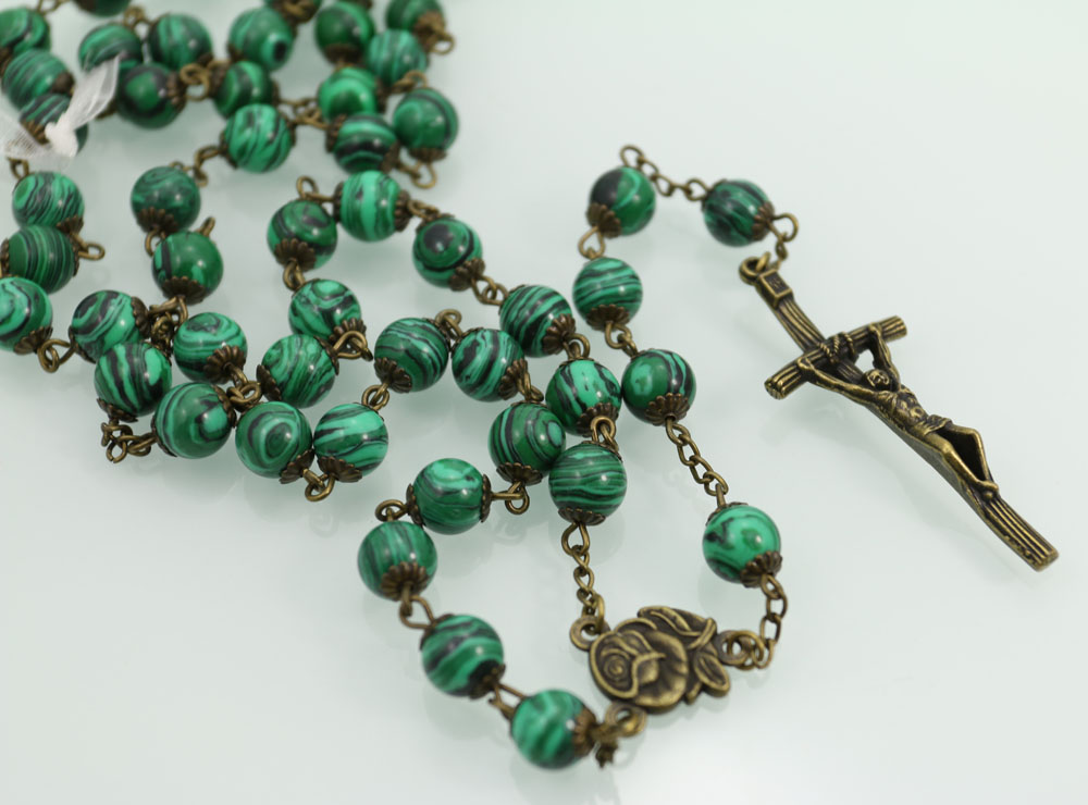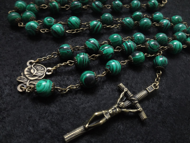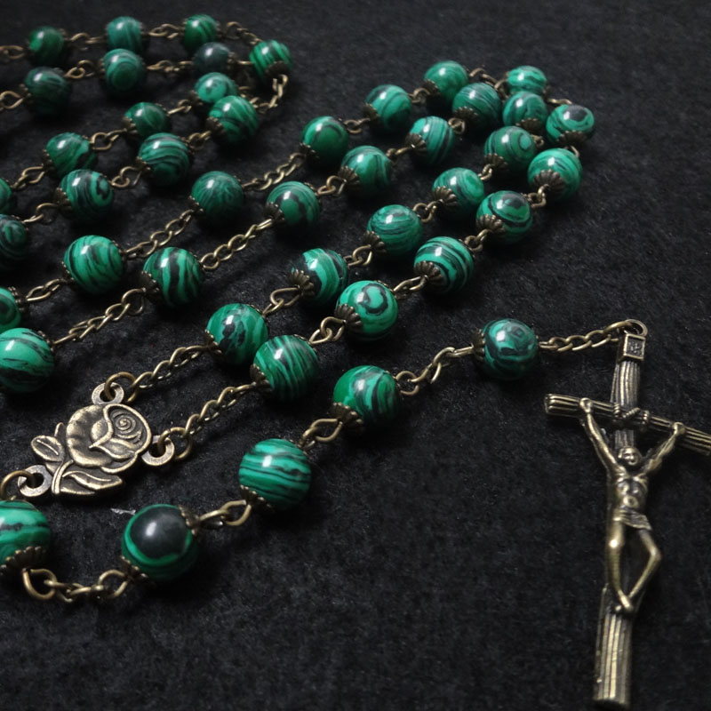 500條起訂 孔雀石天然石古青銅歐美復古十字架念珠項鏈