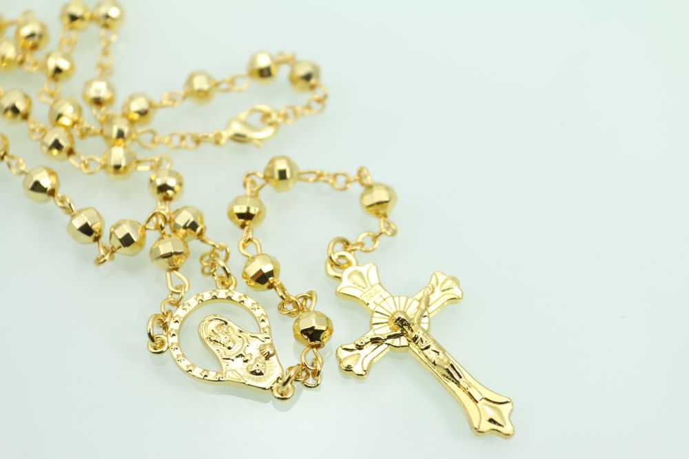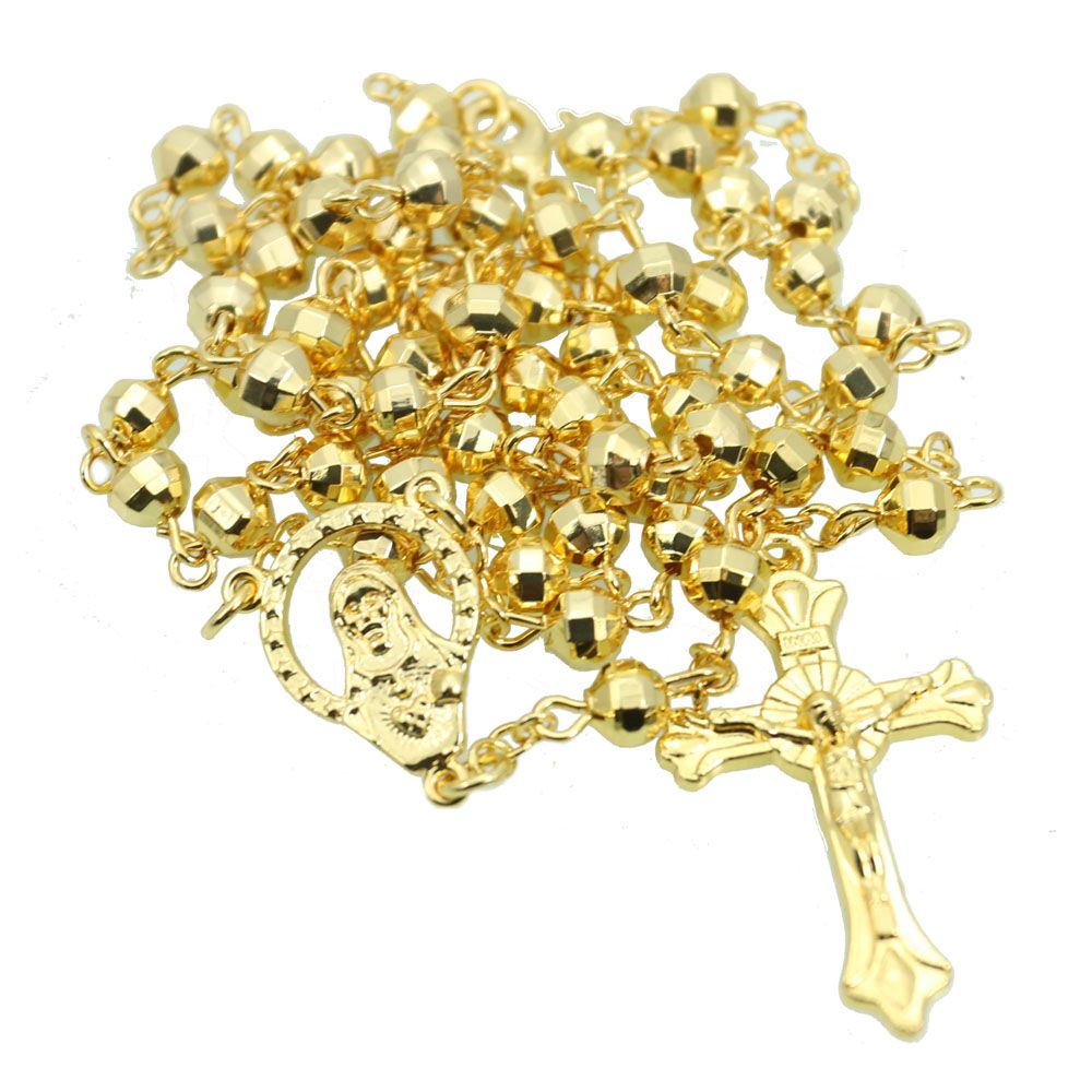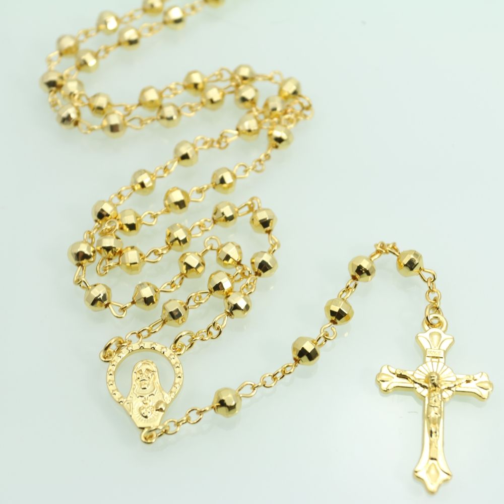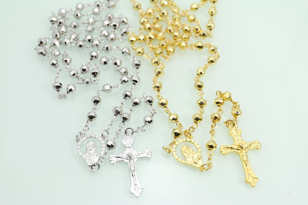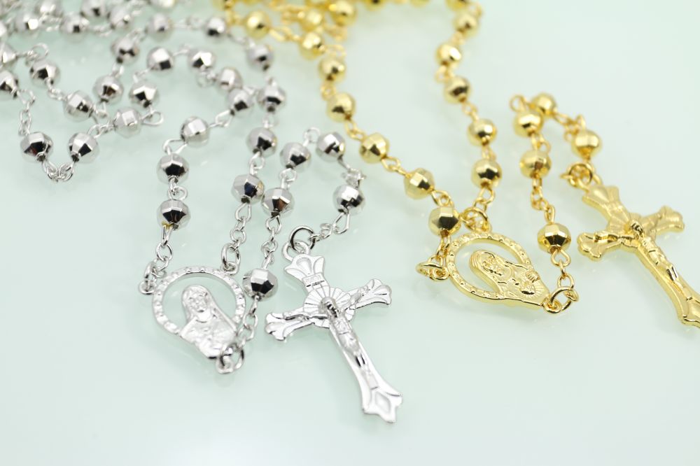 金銀雙色6mm銅珠念珠十字架項鏈祈禱珠跨境電商十字架用品批發(fā)