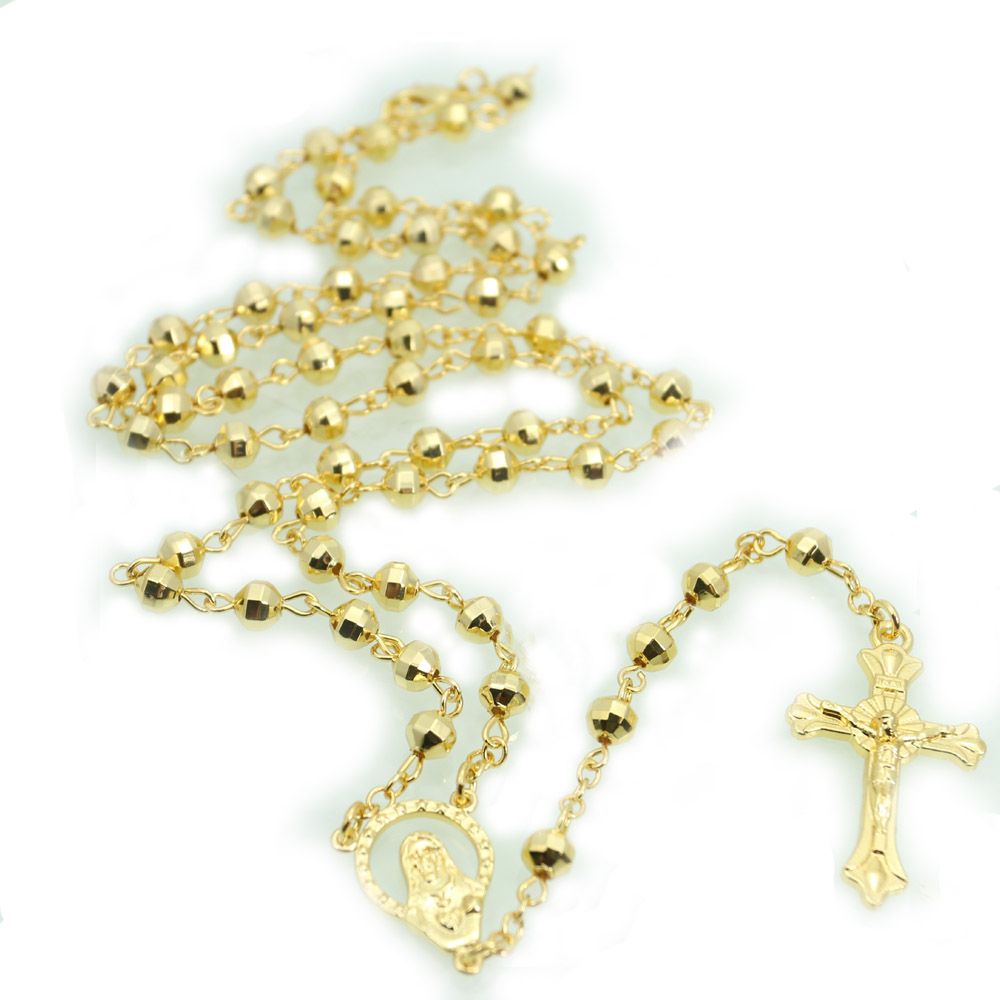 鍍18K金銅珠鏈天主教飾品圣母圣子基督念珠十字架項鏈