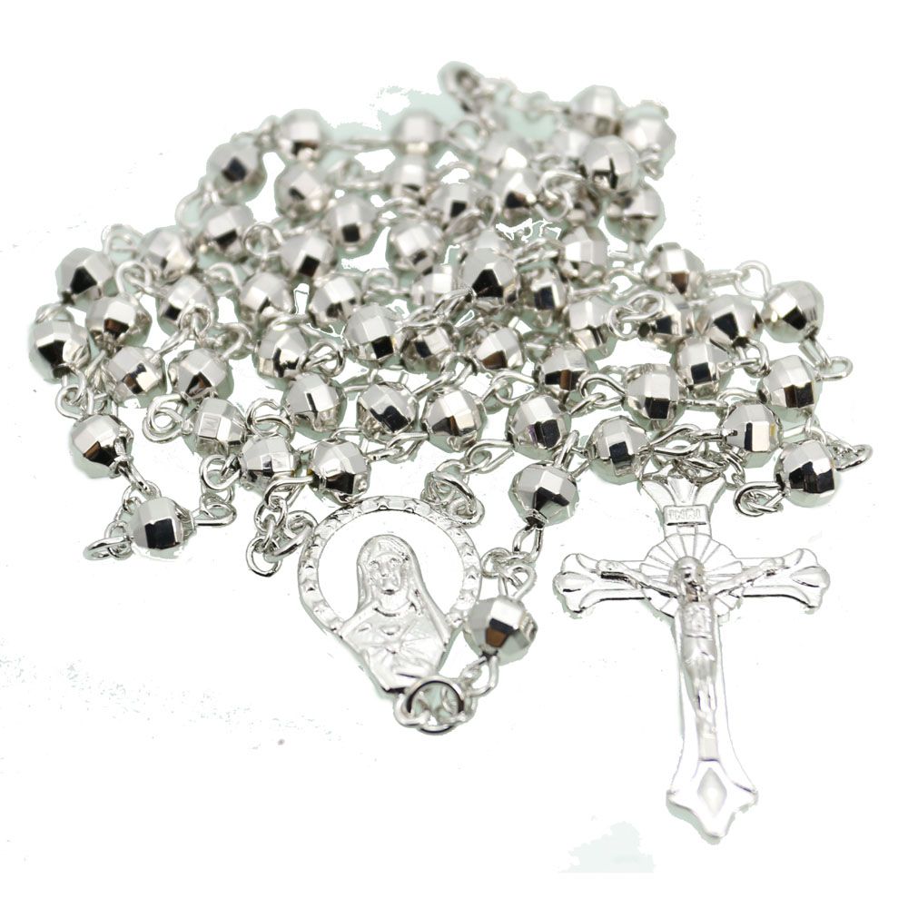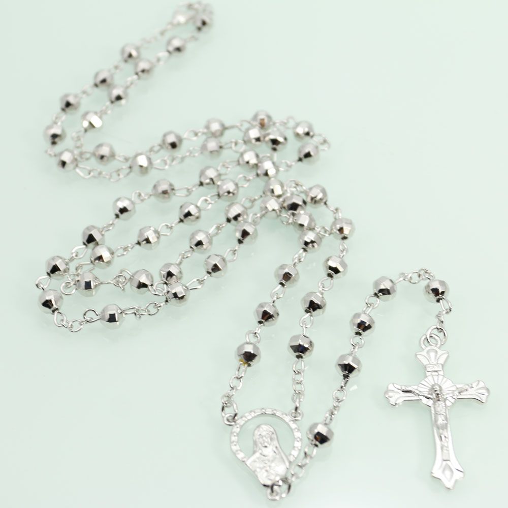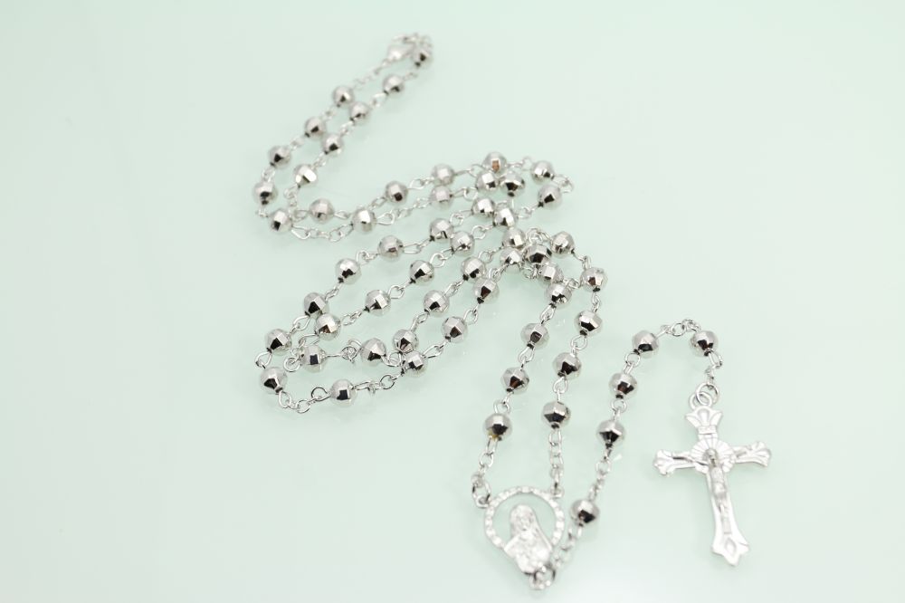(白K銀)6mm銅珠念珠十字架項(xiàng)鏈祈禱珠十字架
