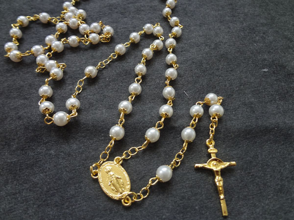 訂做款500條起珍珠十字架項(xiàng)鏈 天主教念珠