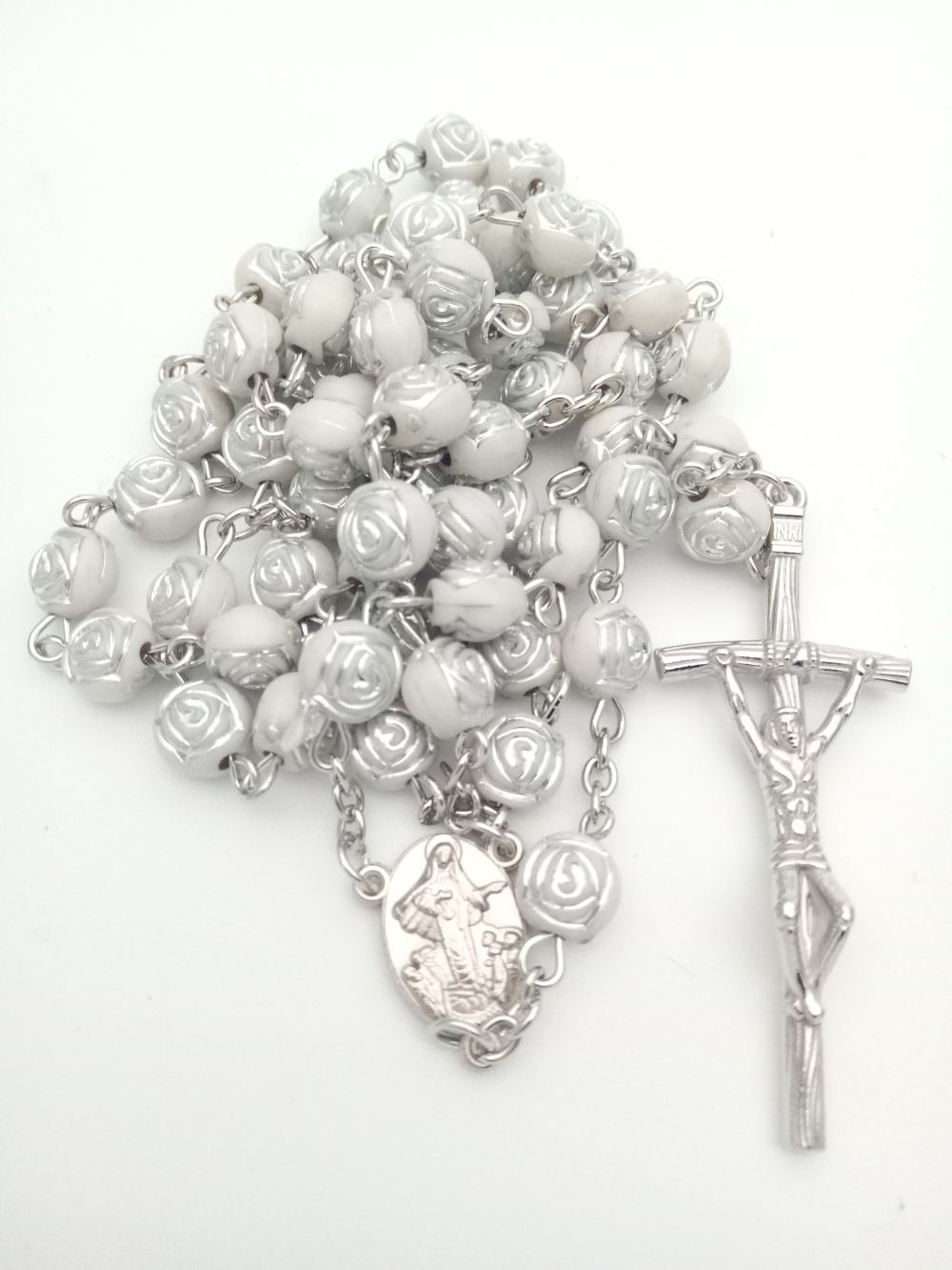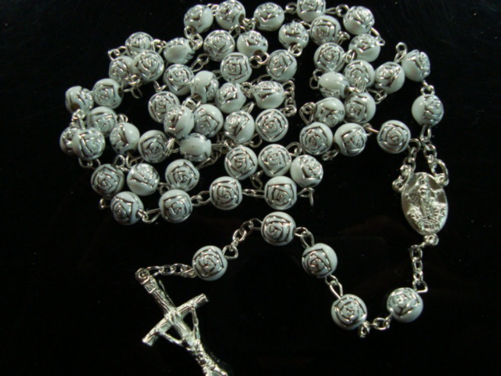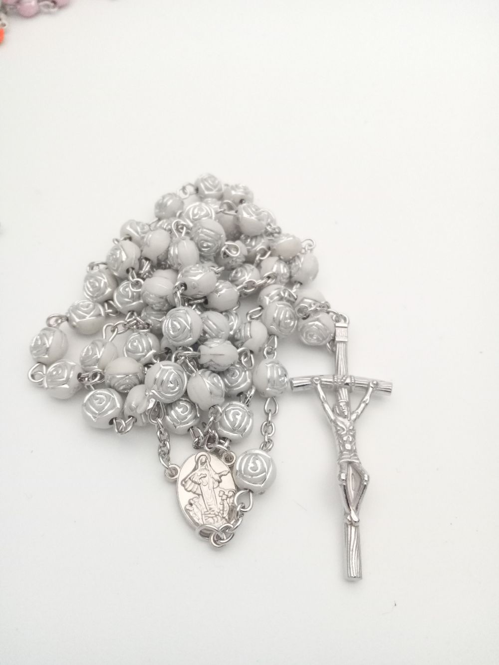 念珠飾品批發(fā) 十字架項(xiàng)鏈塑料玫瑰珠項(xiàng)鏈