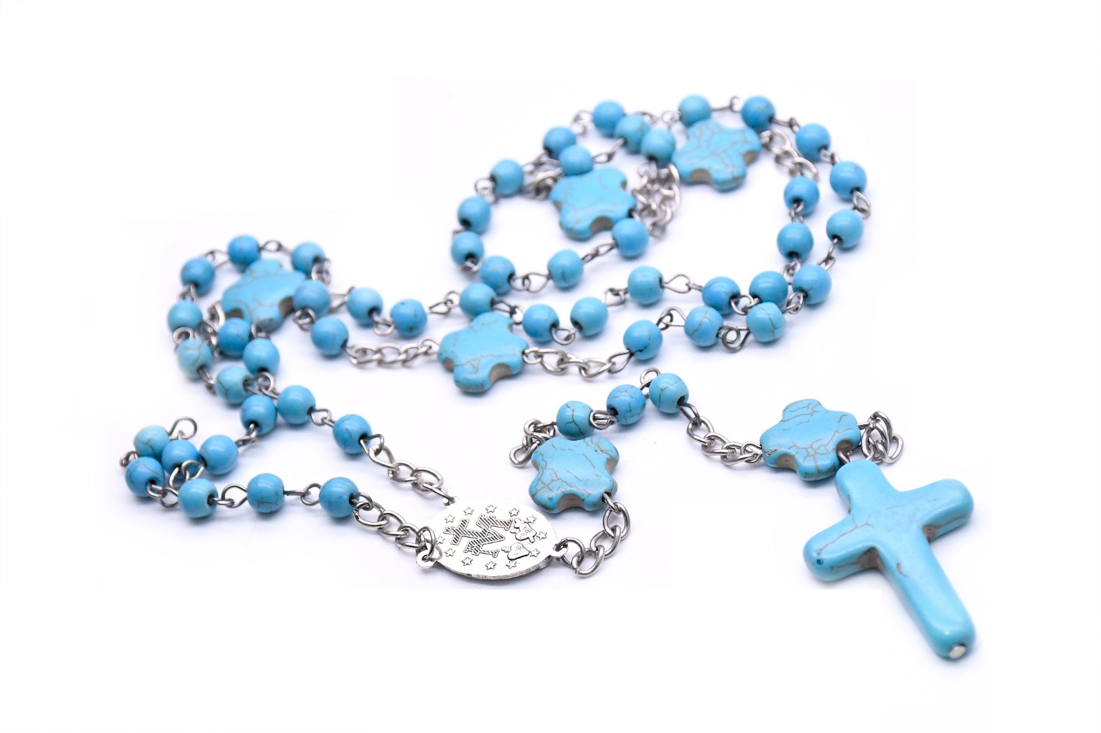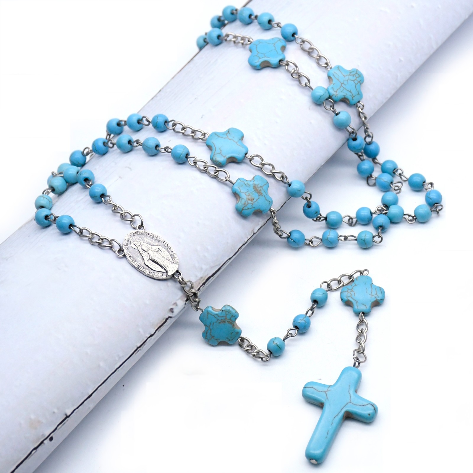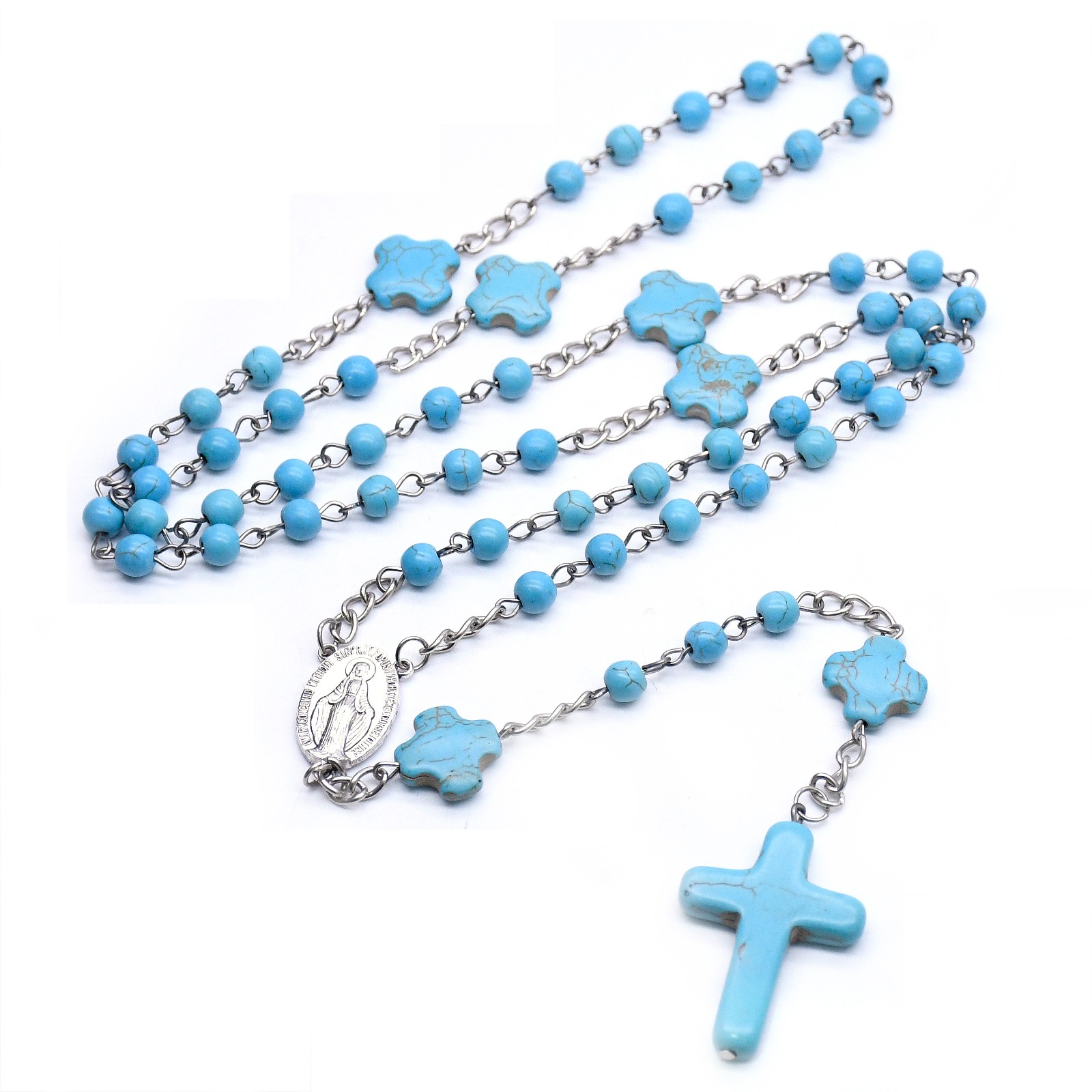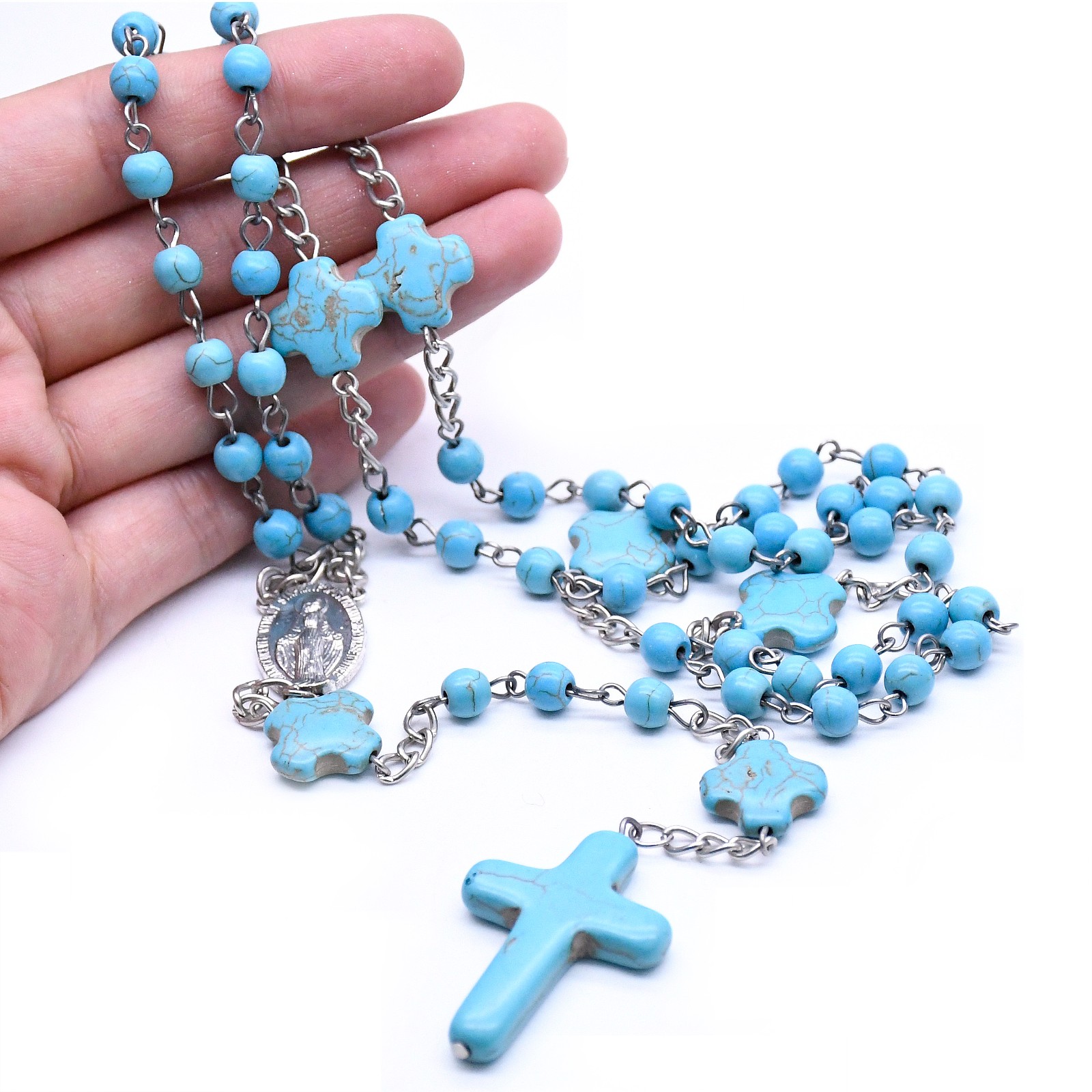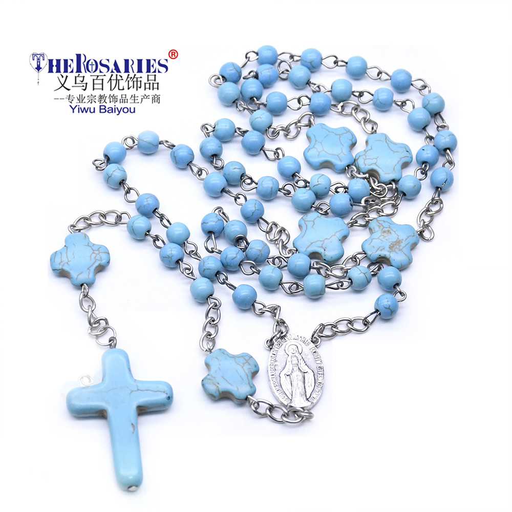 跨境電商貨源藍(lán)松石念珠項(xiàng)鏈?zhǔn)旨茼?xiàng)鏈計(jì)數(shù)珠毛衣鏈男女十字架