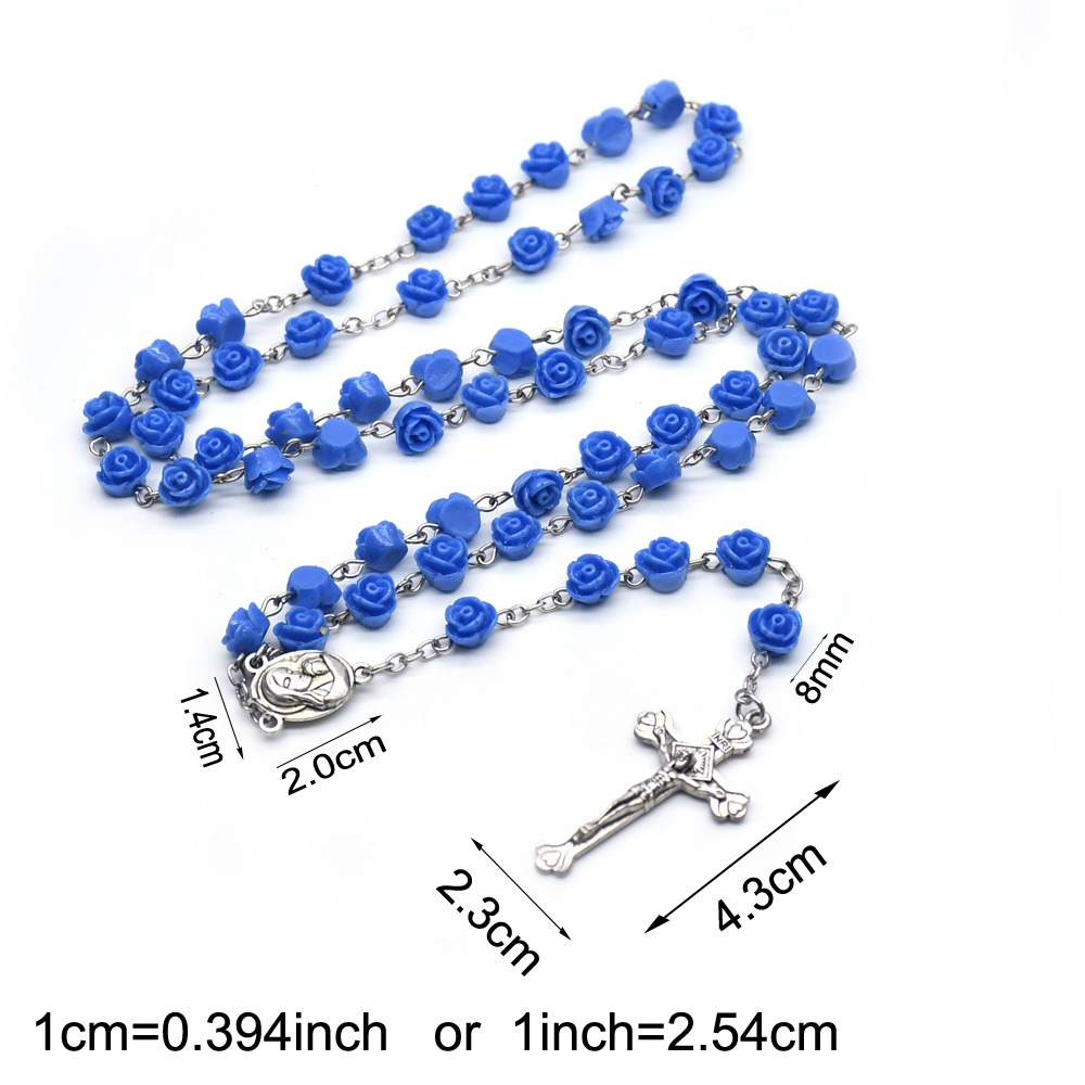婚禮祈禱珠玫瑰花念珠項(xiàng)鏈瑪麗亞十字架洗禮珠 電商跨境飾品