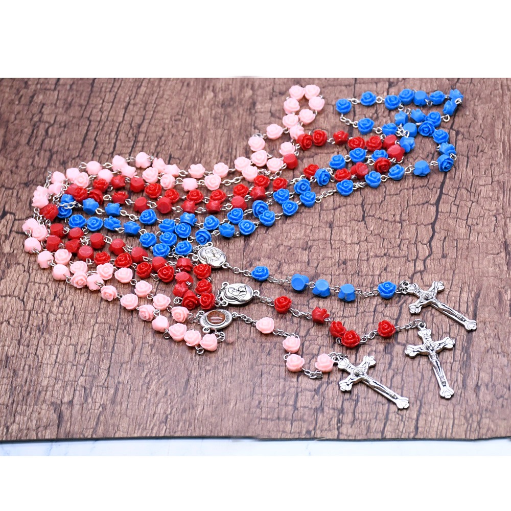 念珠飾品批發(fā) 十字架項(xiàng)鏈塑料玫瑰珠項(xiàng)鏈