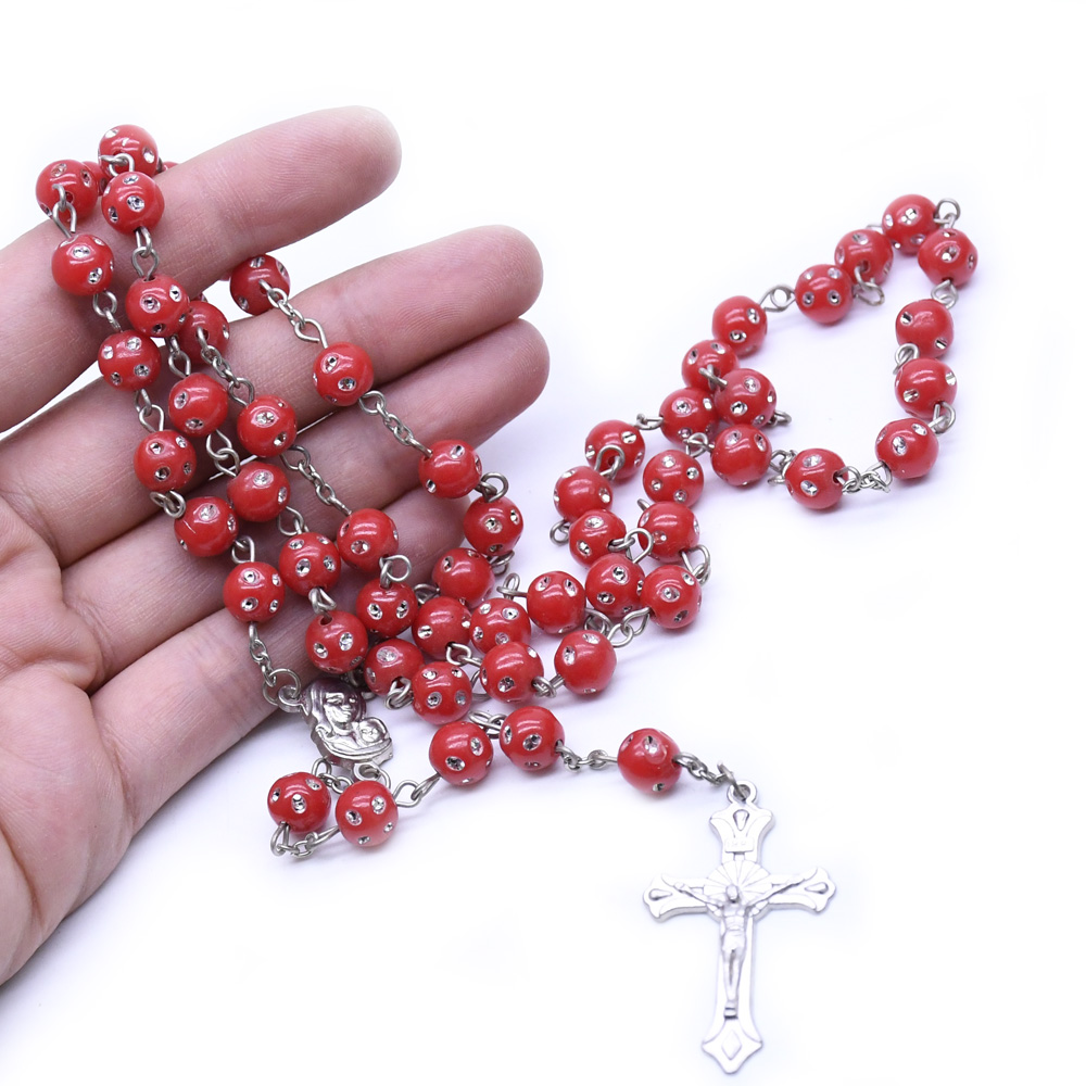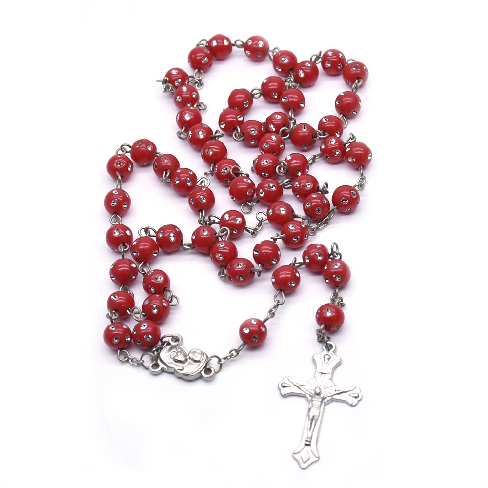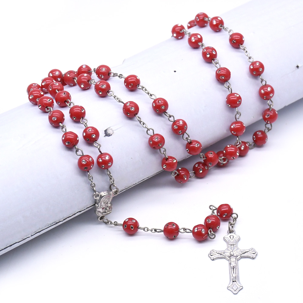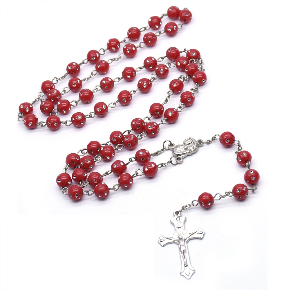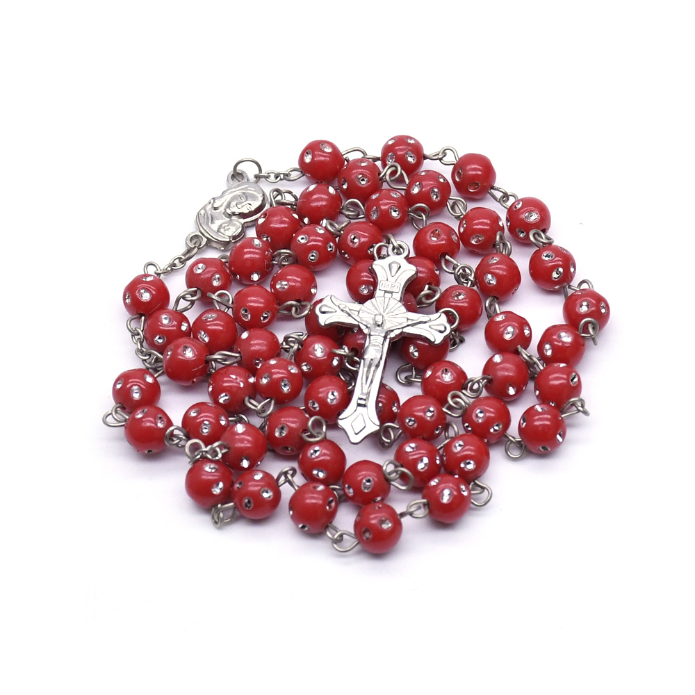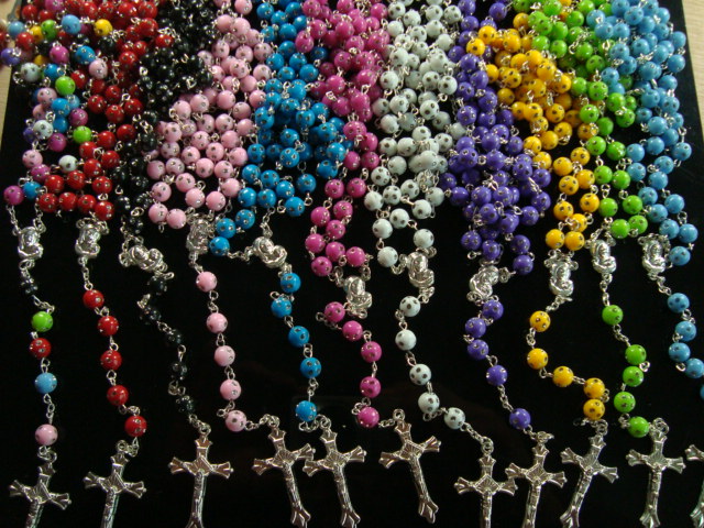 念珠飾品批發(fā) 十字架項鏈塑料玫瑰珠項鏈