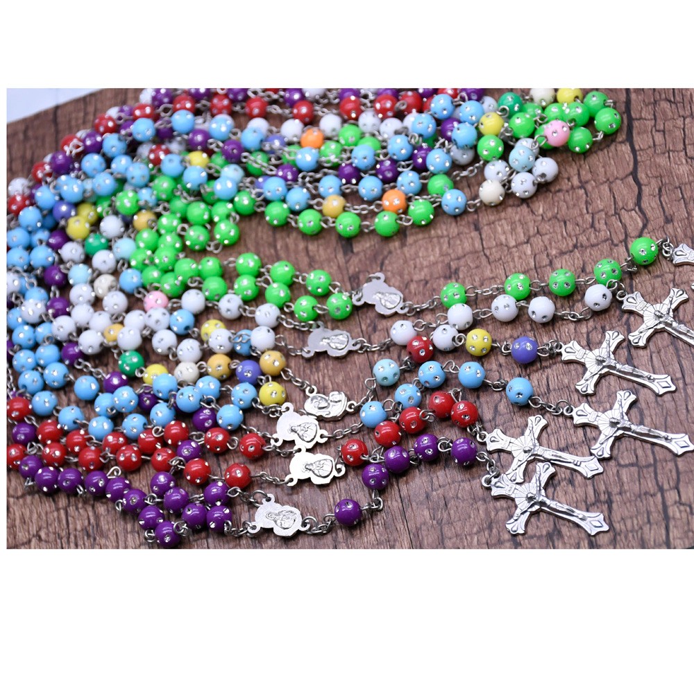 夜光十字架項鏈連線珠 塑料發(fā)光念珠項鏈(顏色隨機,按12條倍數(shù)拍)