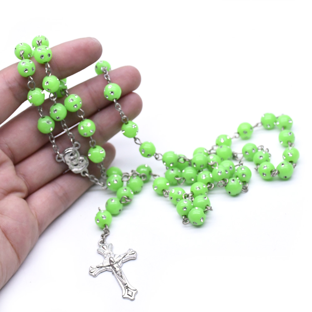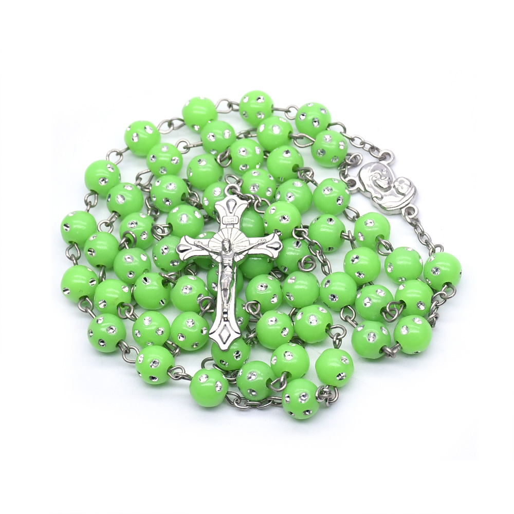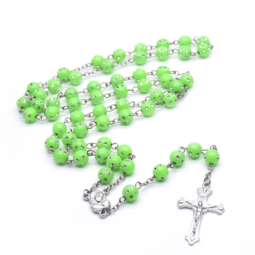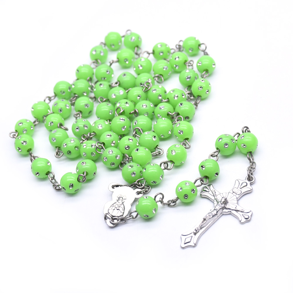 夜光十字架項(xiàng)鏈連線(xiàn)珠 塑料發(fā)光念珠項(xiàng)鏈(顏色隨機(jī),按12條倍數(shù)拍)