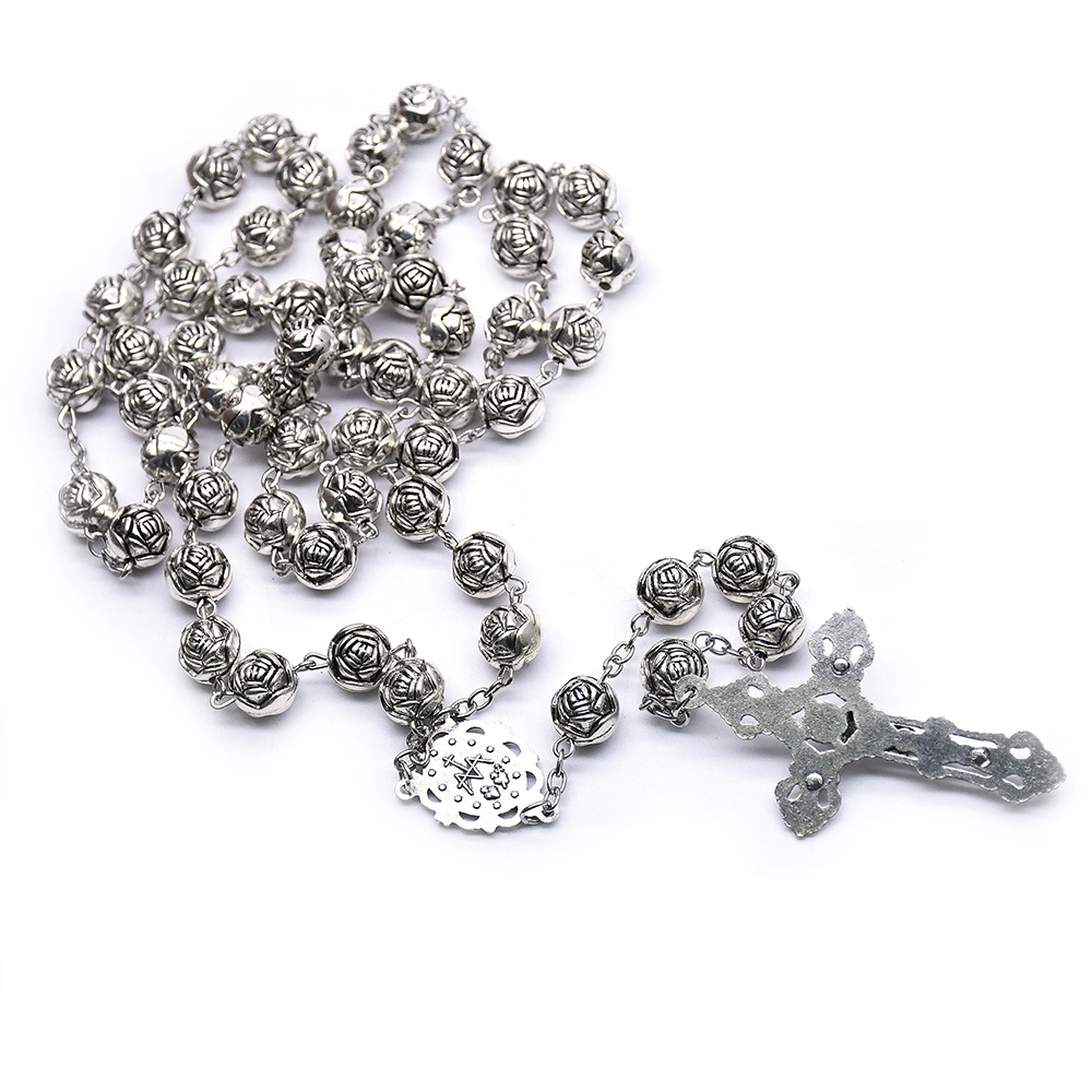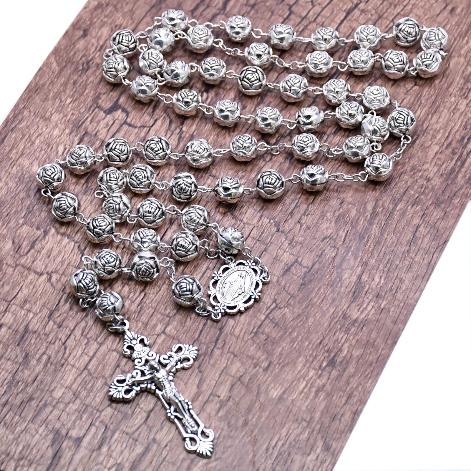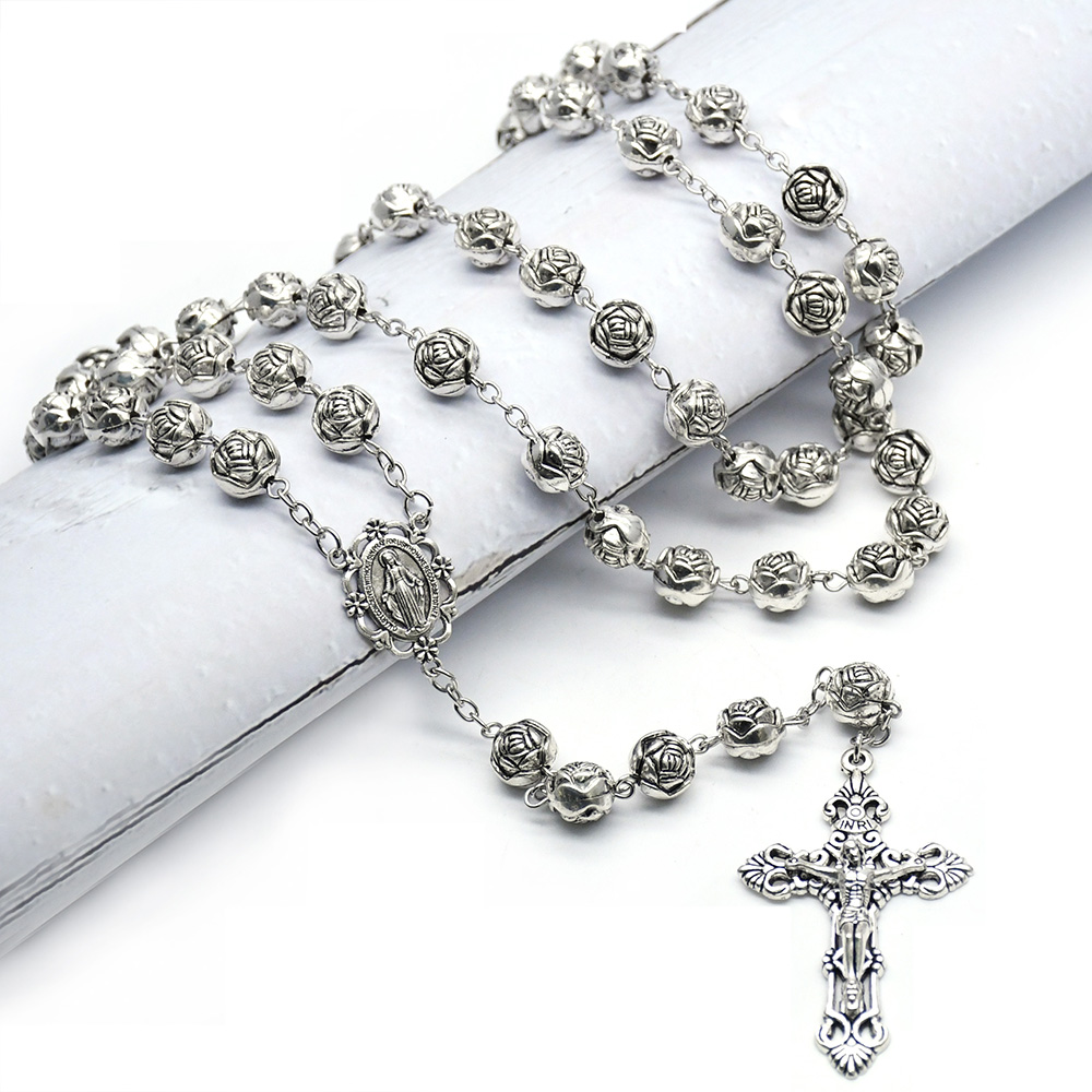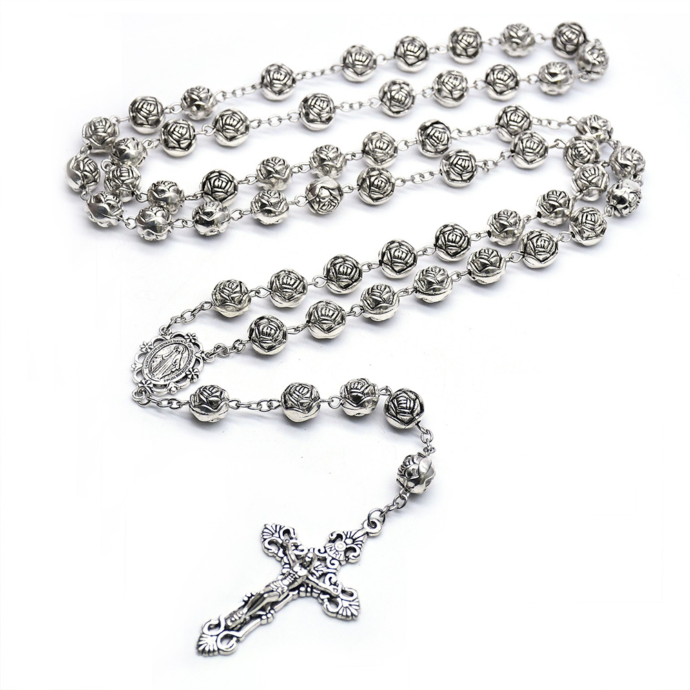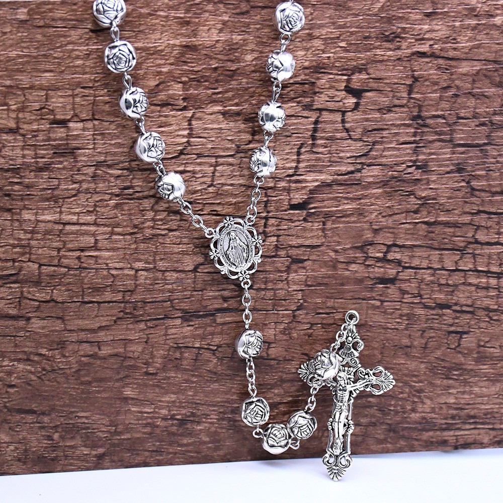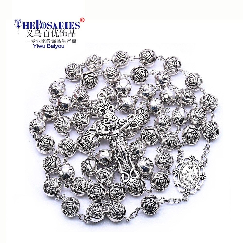 念珠飾品批發(fā) 十字架項(xiàng)鏈塑料玫瑰珠項(xiàng)鏈