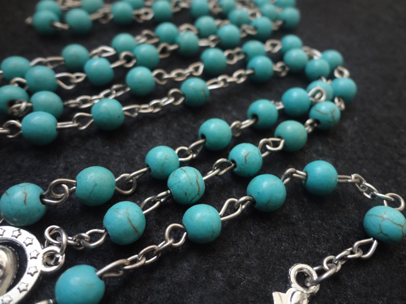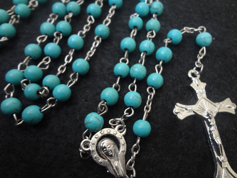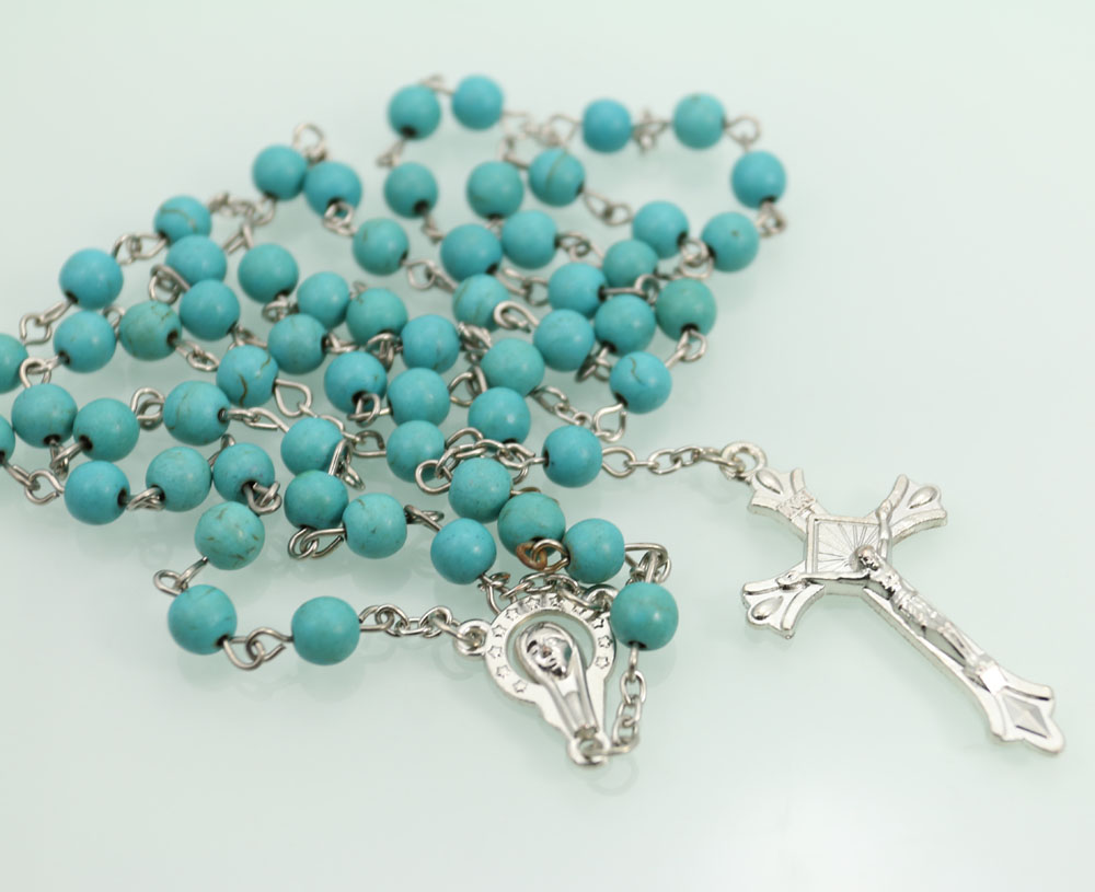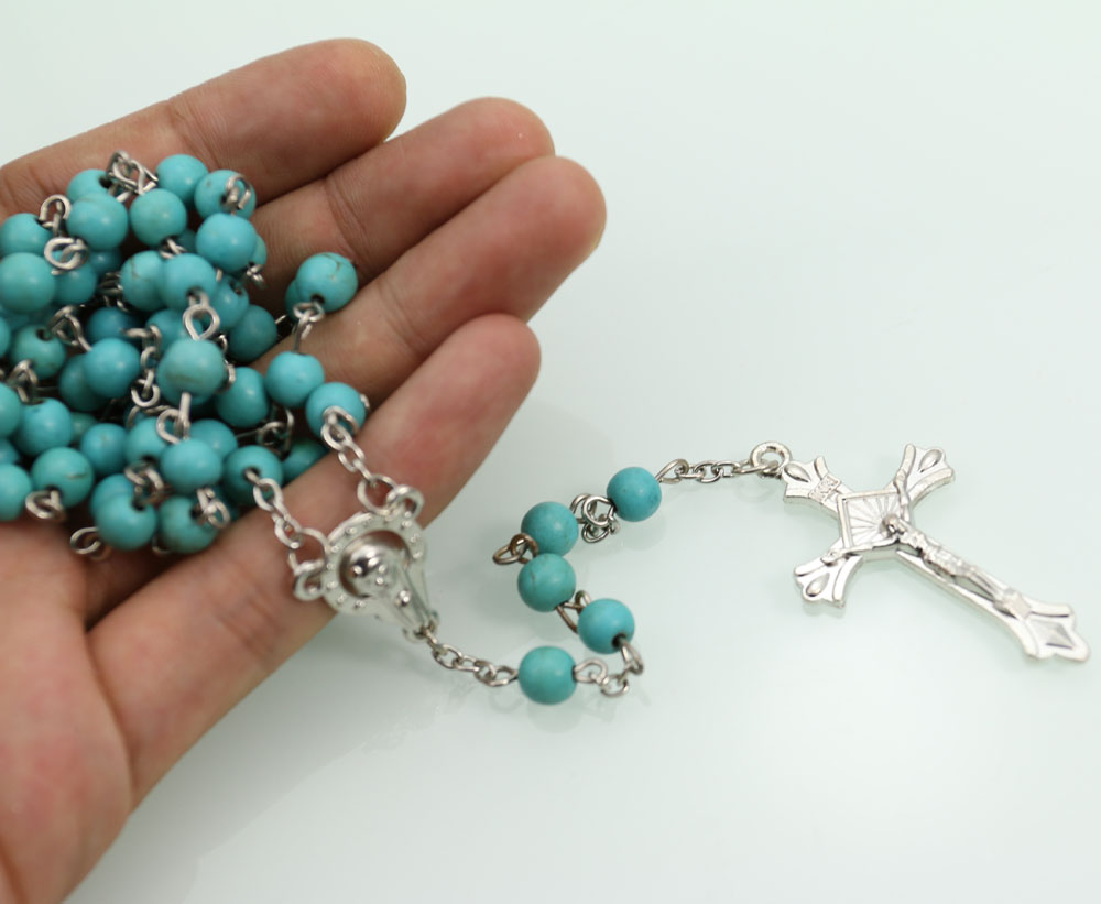 跨境電商貨源藍(lán)松石念珠項(xiàng)鏈?zhǔn)旨茼?xiàng)鏈計(jì)數(shù)珠毛衣鏈男女十字架