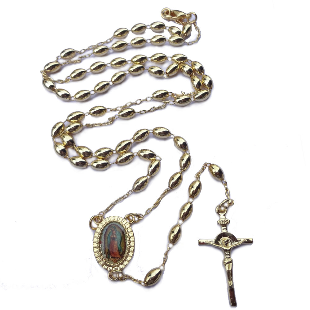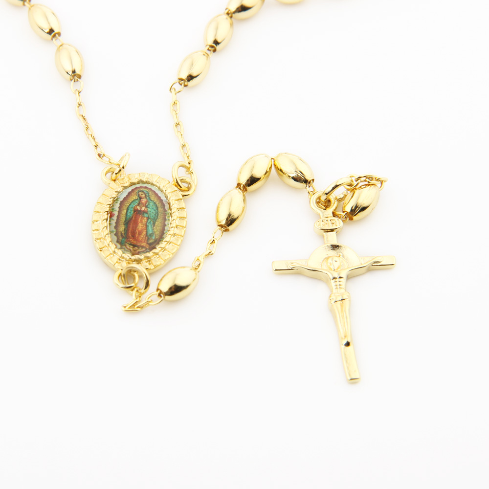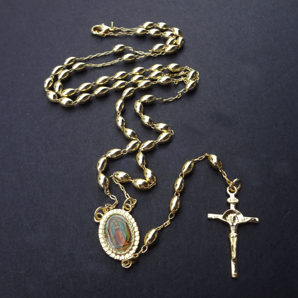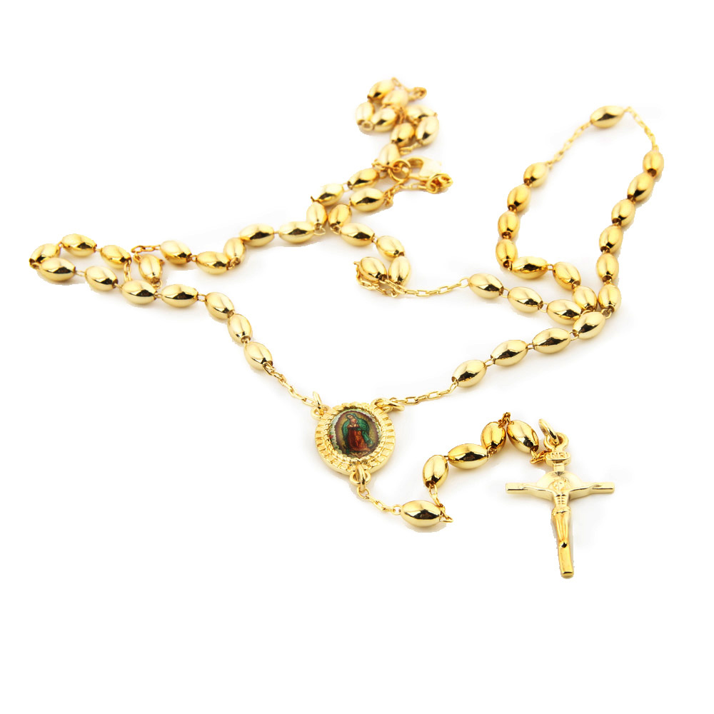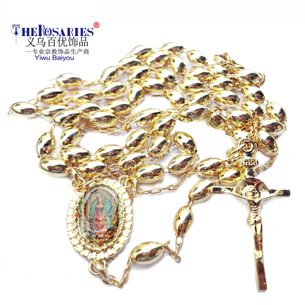 鍍18K金銅珠鏈天主教飾品圣母圣子基督念珠十字架項鏈