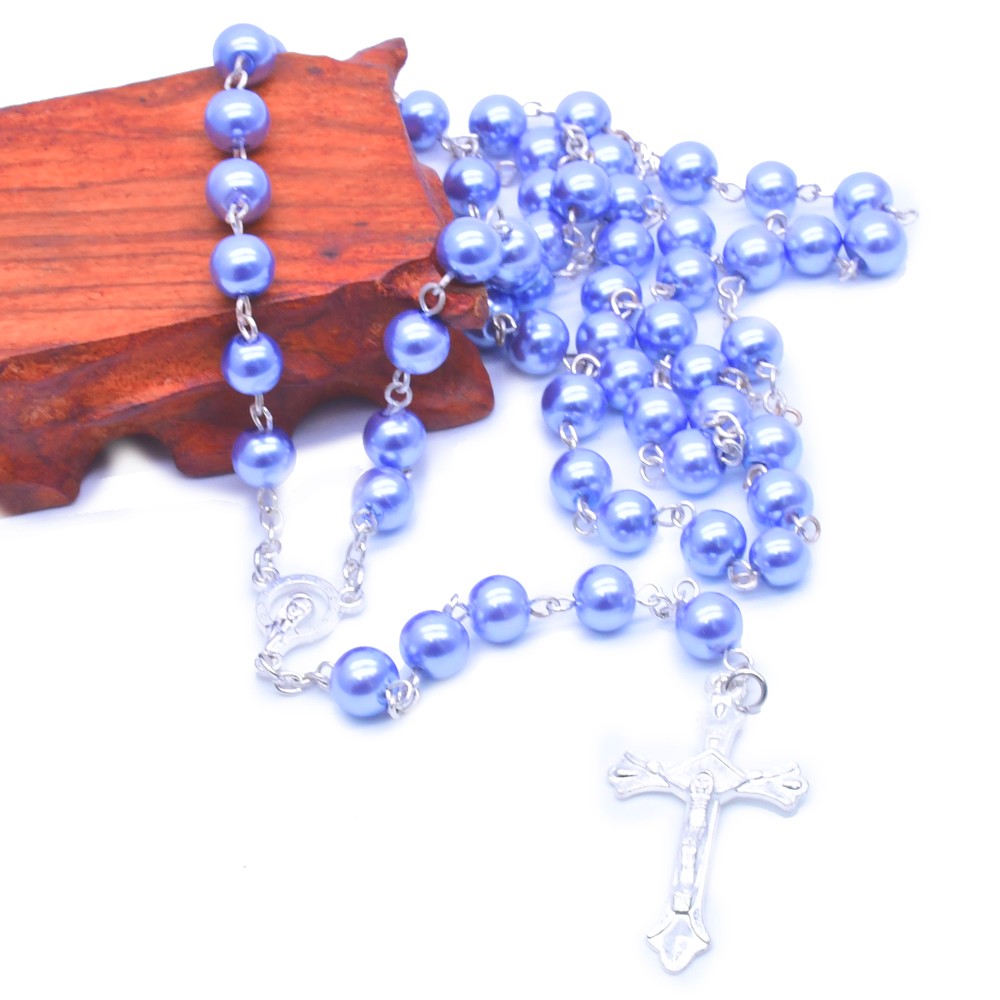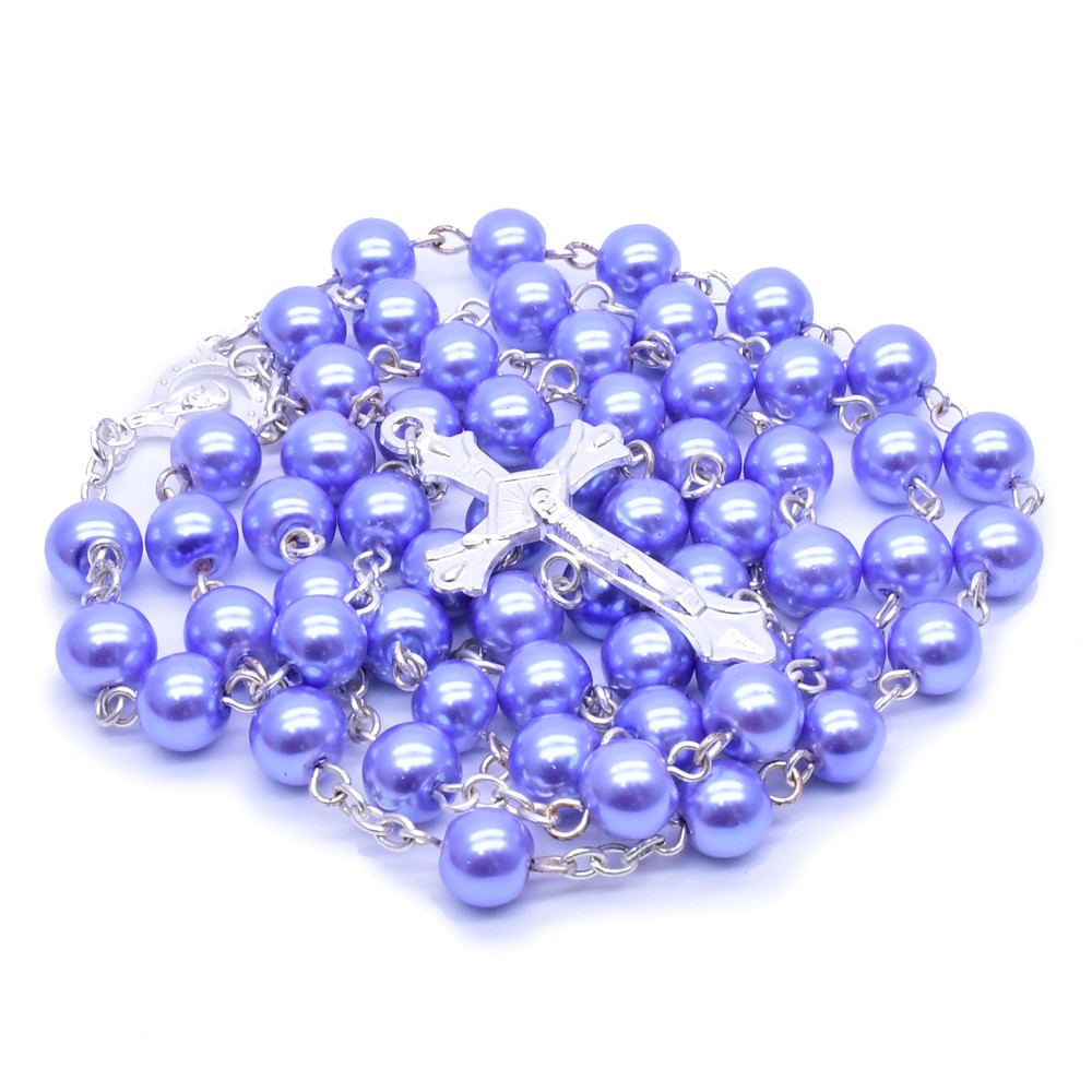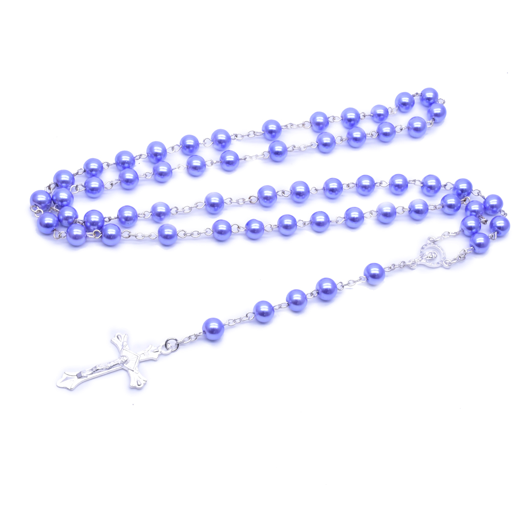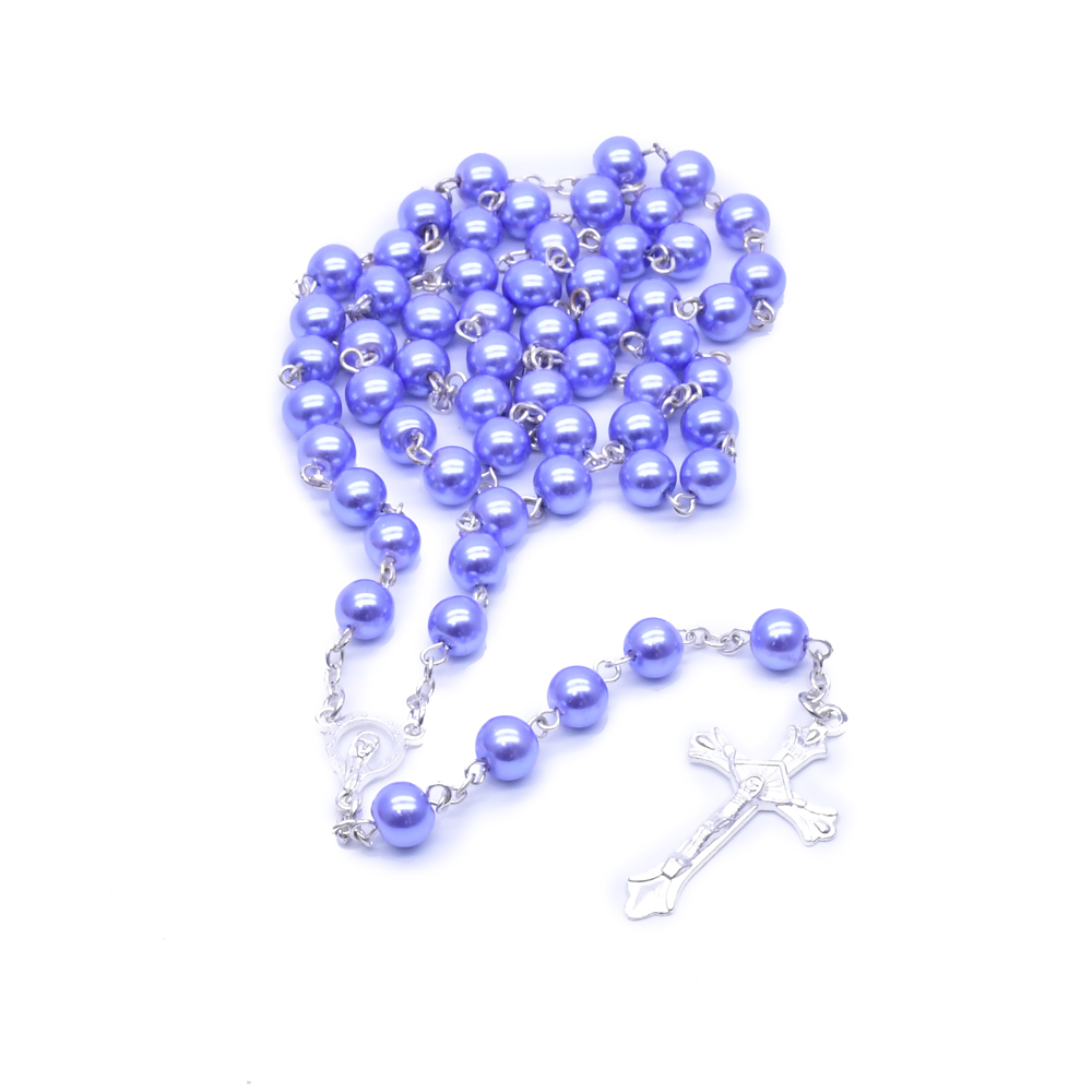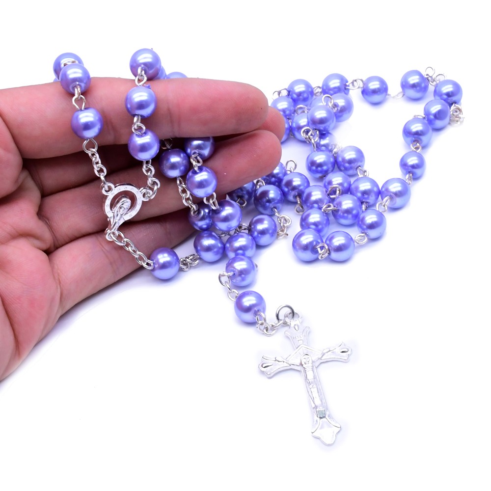 8mm紫色銀針珍珠十字架項(xiàng)鏈念珠項(xiàng)鏈飾品