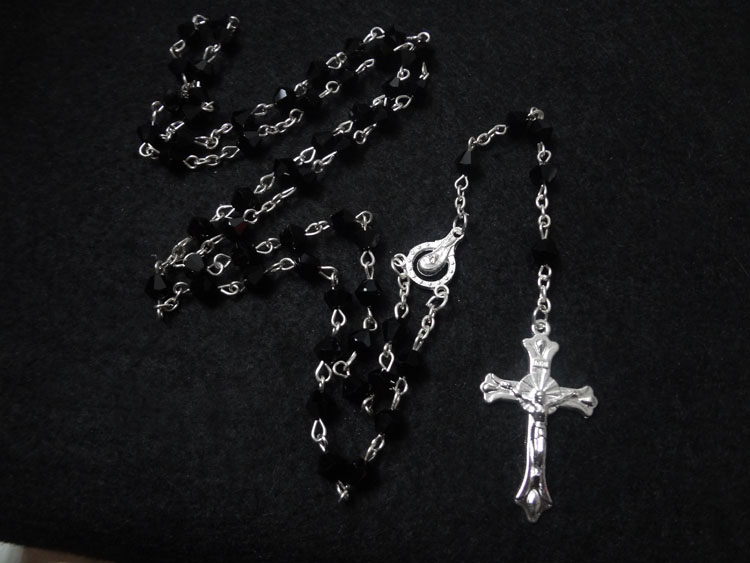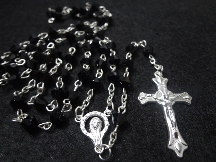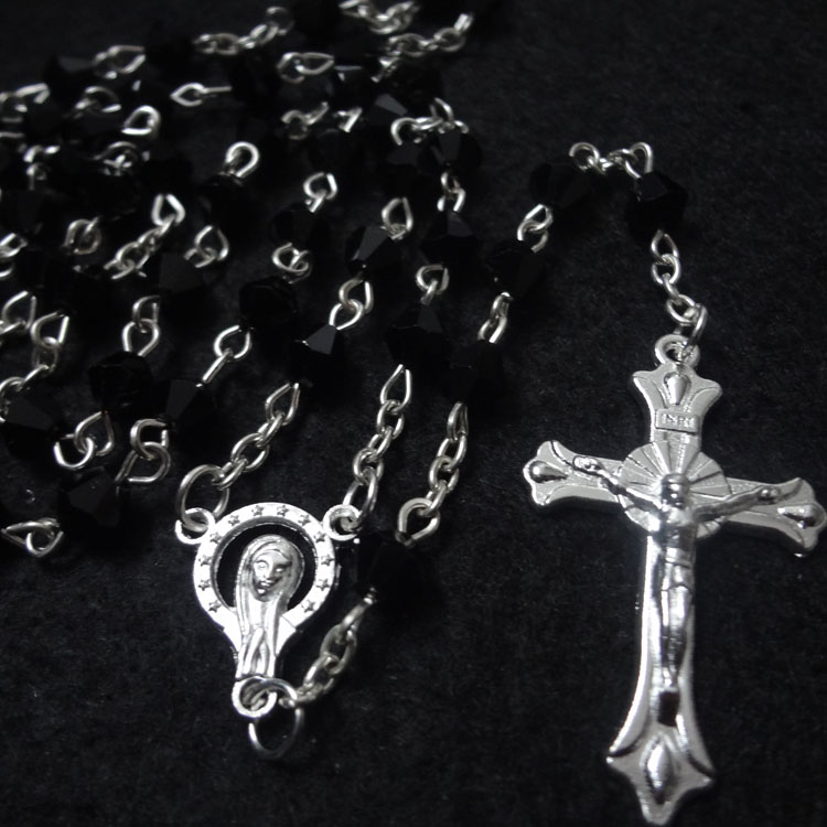 訂做款500條起圣誕贈品古青銅歐美復(fù)古十字架飾品水晶念珠項(xiàng)鏈