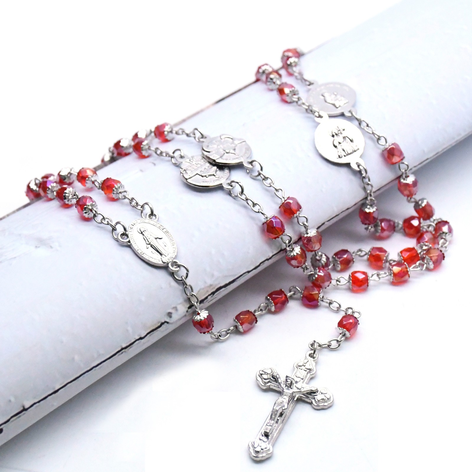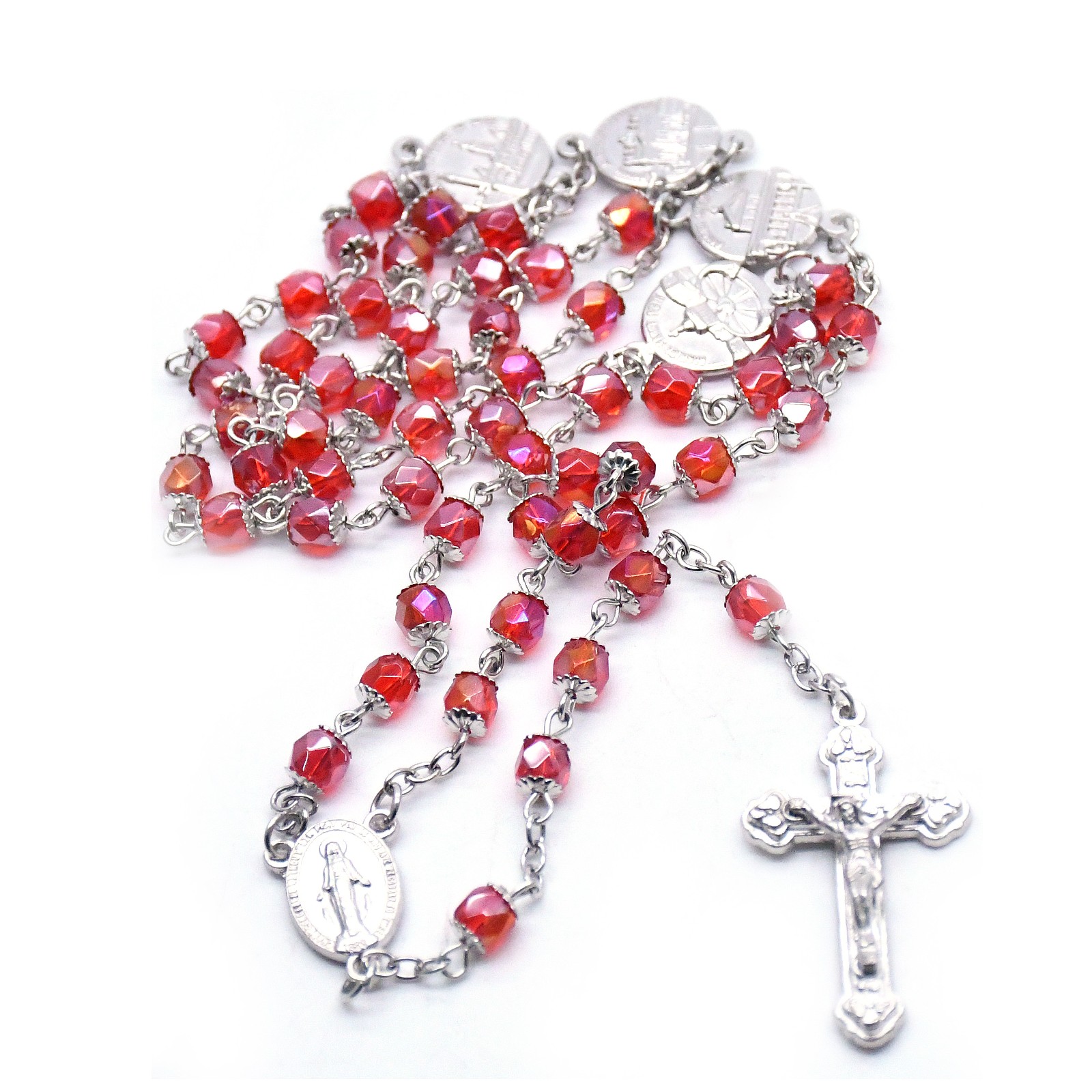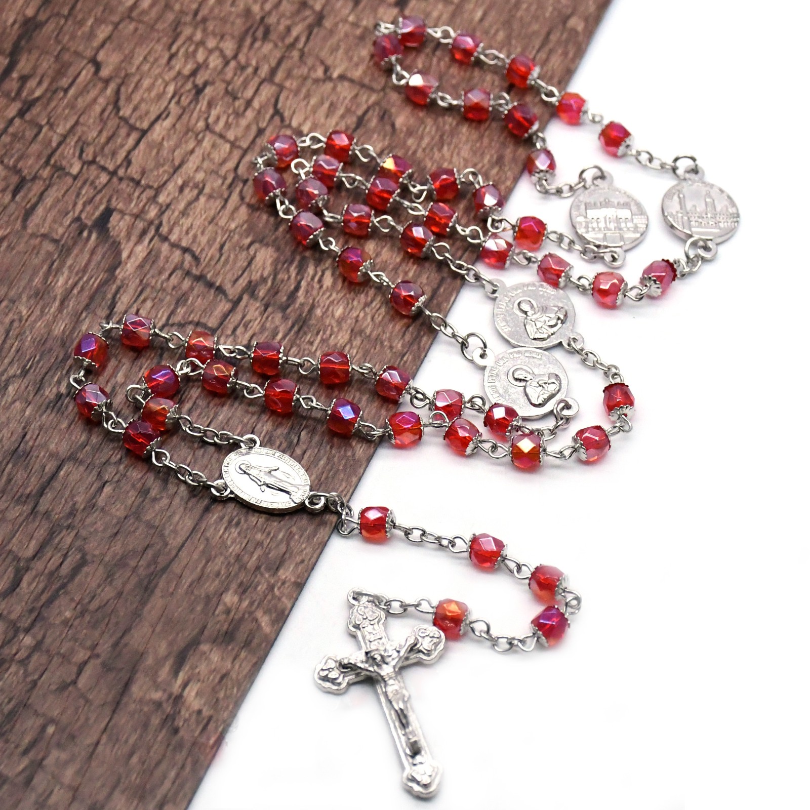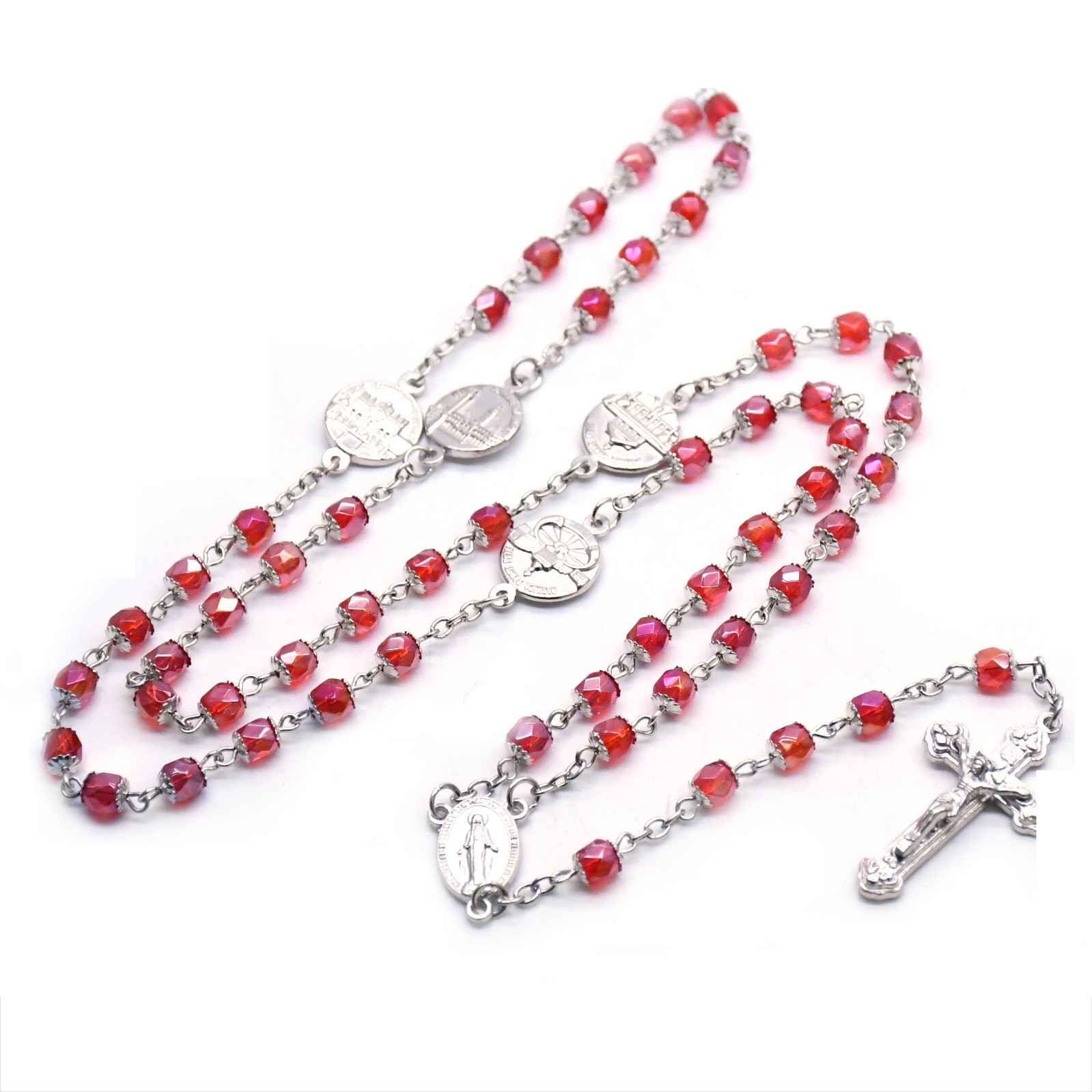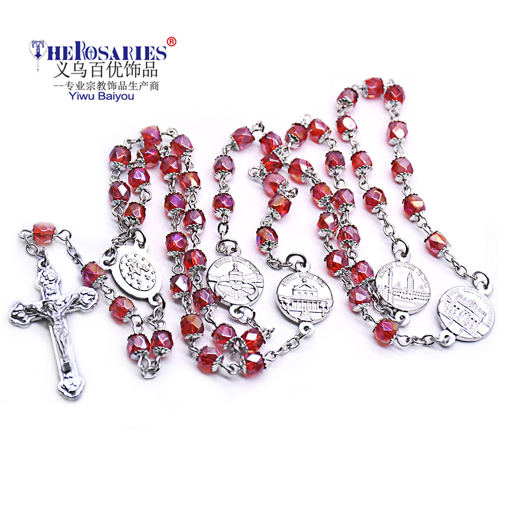 外貿(mào)出口貨源水晶十字架念珠Rosary項鏈飾品批發(fā)多色選 6*8