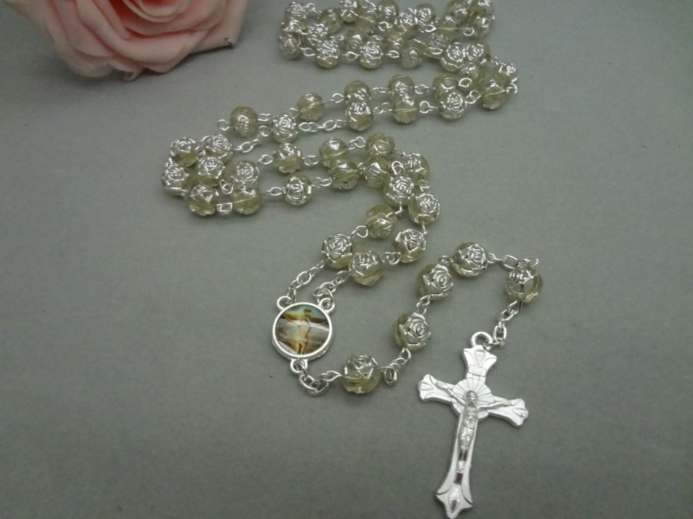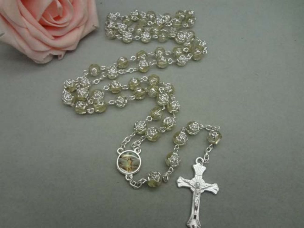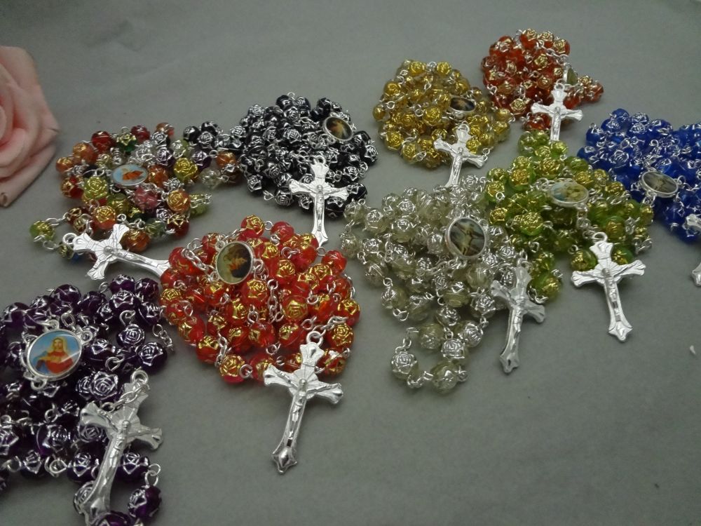 念珠飾品批發(fā) 十字架項鏈塑料玫瑰珠項鏈