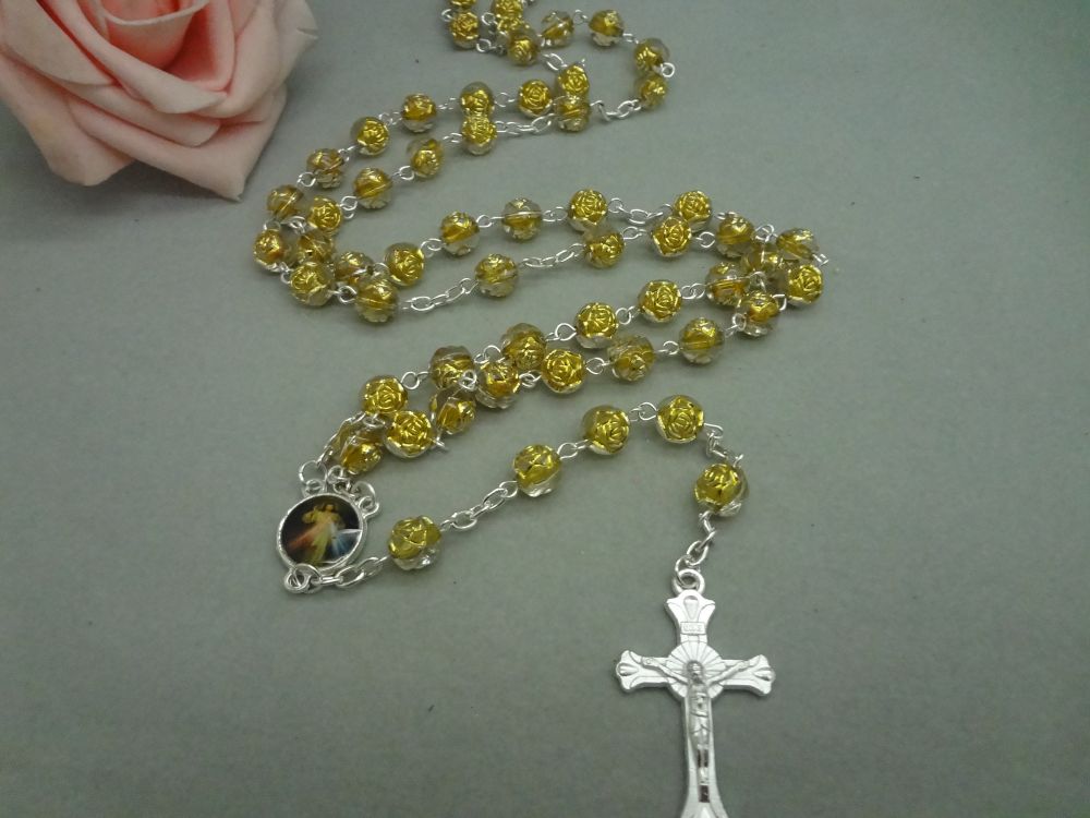 念珠飾品批發(fā) 十字架項(xiàng)鏈塑料玫瑰珠項(xiàng)鏈