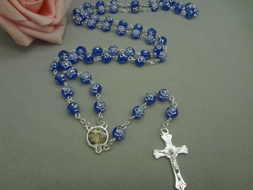 念珠飾品批發(fā) 十字架項鏈塑料玫瑰珠項鏈