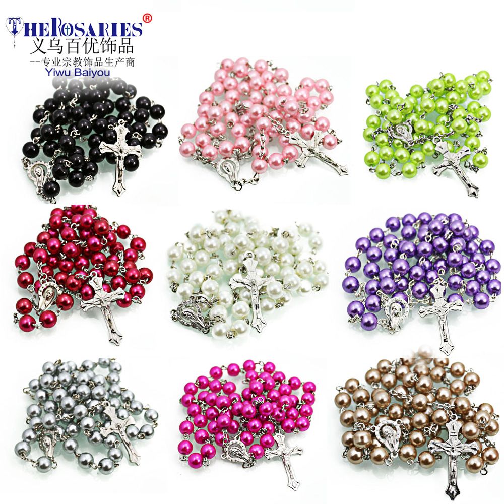 珍珠十字架項鏈8MM念珠飾品批發(fā) Rosary Beads跨境電商飾品