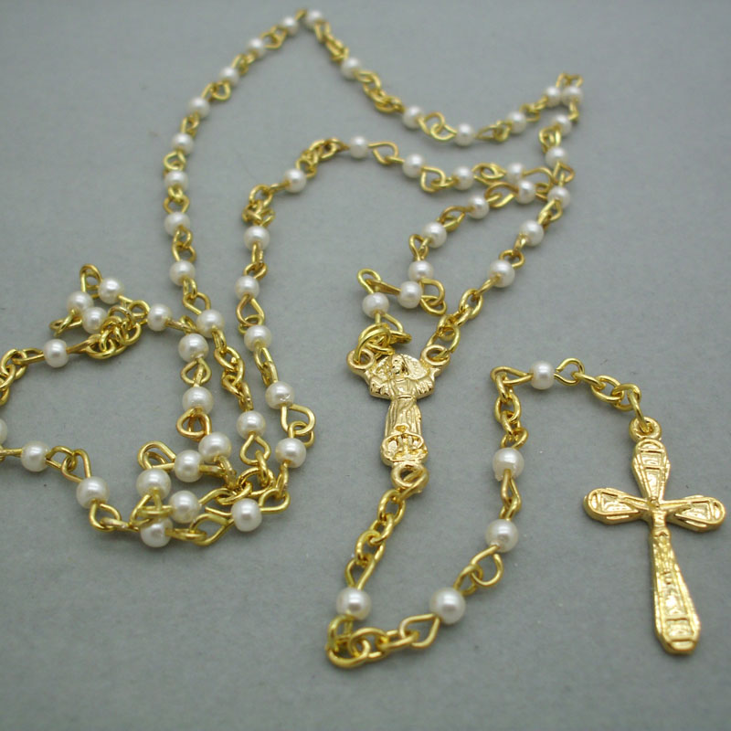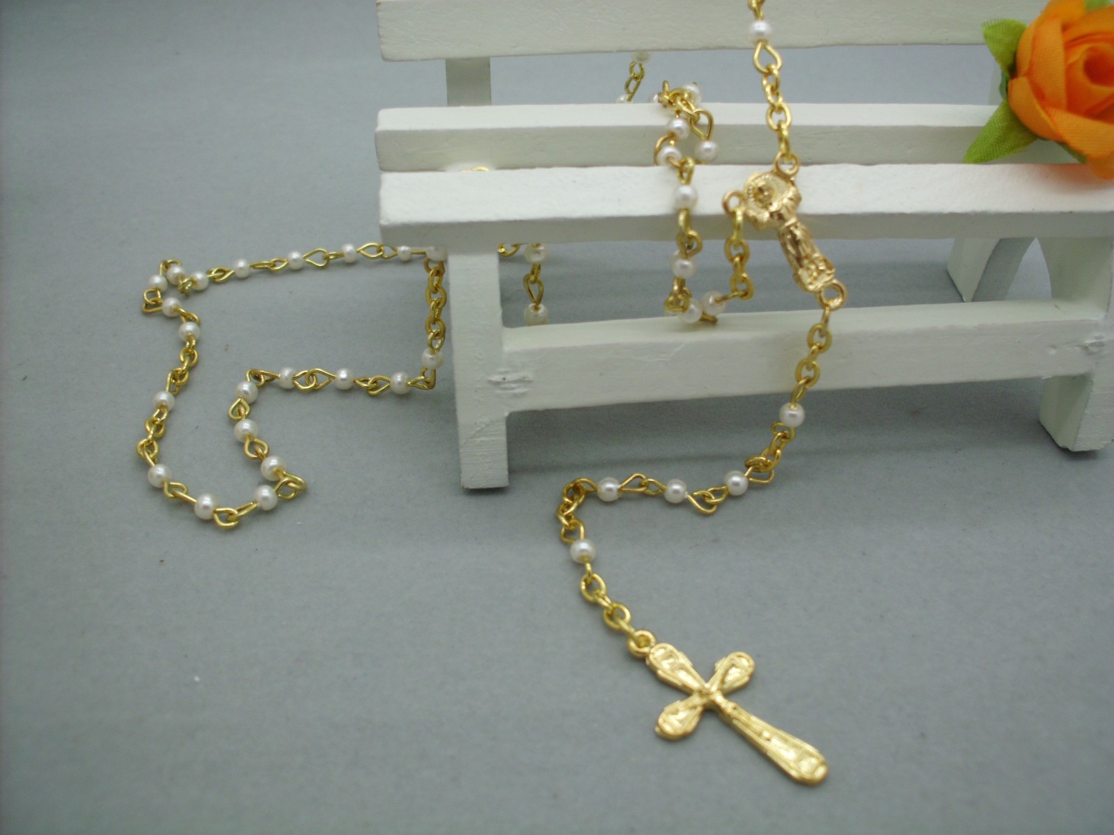 3mm迷你珠念珠項鏈 跨境十字架飾品十字架珍珠項鏈