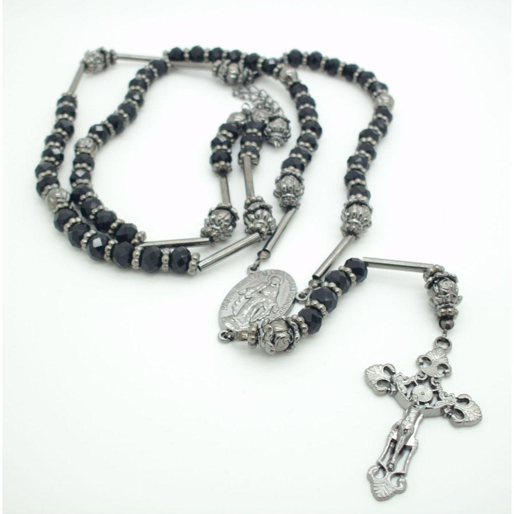 訂做款500條起圣誕贈品古青銅歐美復古十字架飾品水晶念珠項鏈