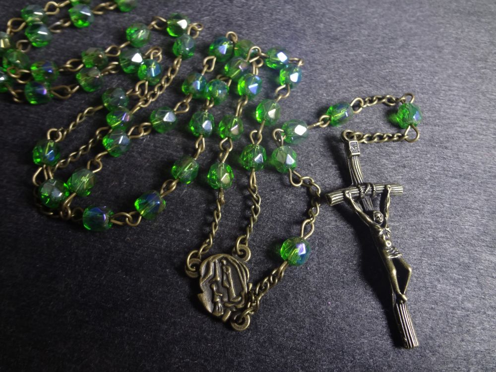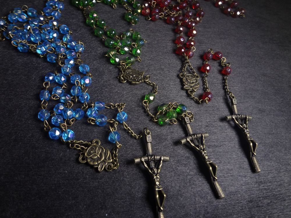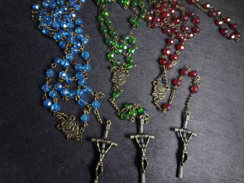 訂做款500條起圣誕贈品古青銅歐美復(fù)古十字架飾品水晶念珠項鏈